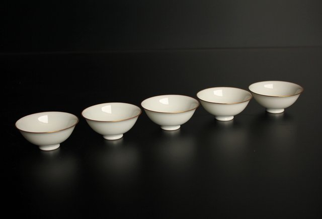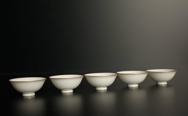 三浦竹泉 金縁白磁煎茶碗5客 K380