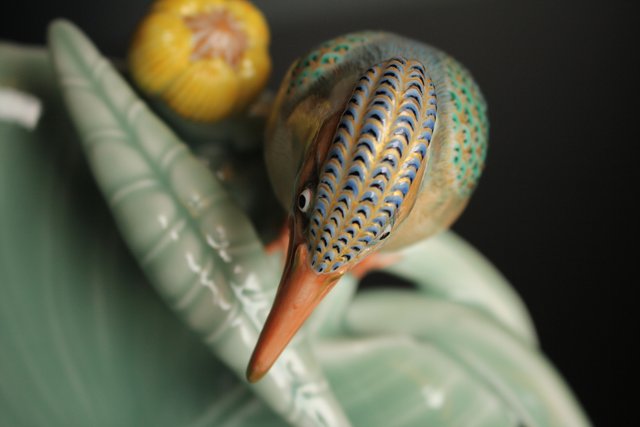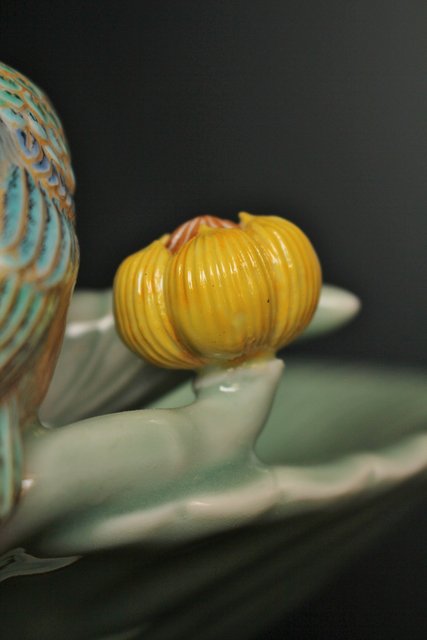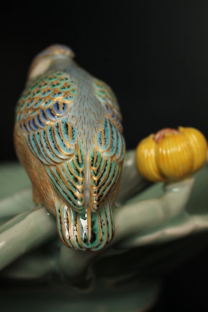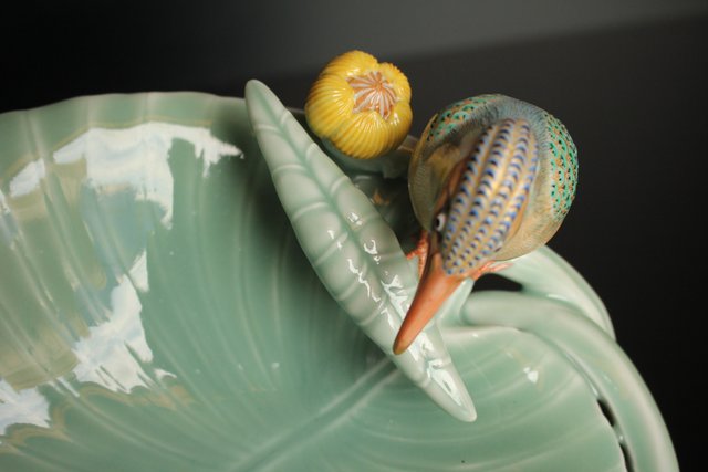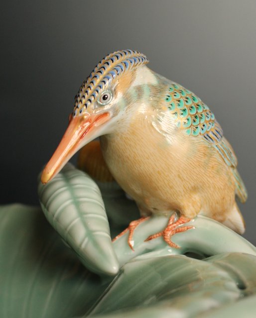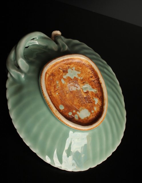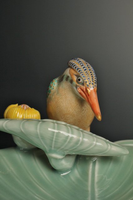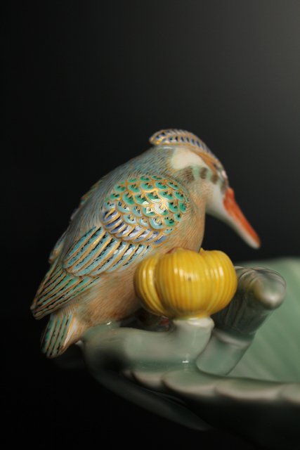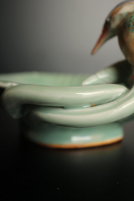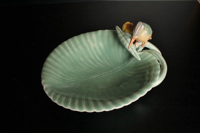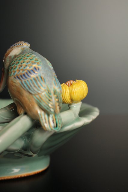 三代 真葛香山/宮川香山 青磁釉河骨二翡翠 菓子器 K402