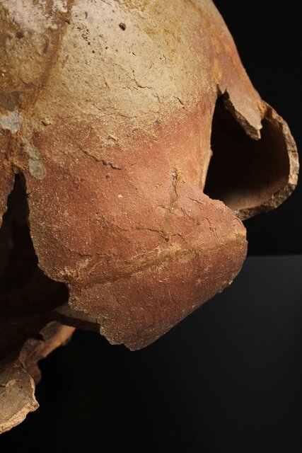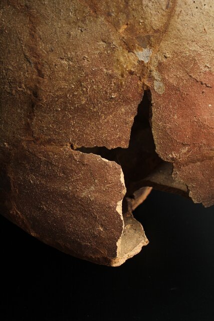 窯の中で破裂し大破した様子