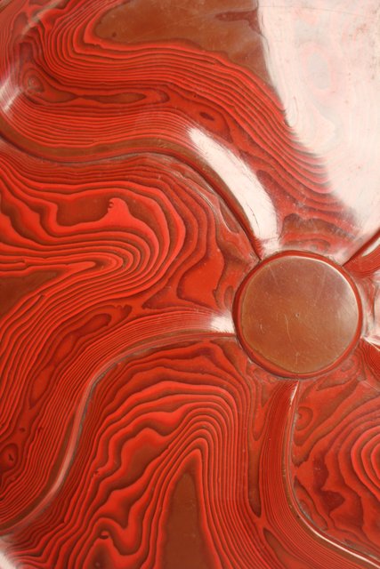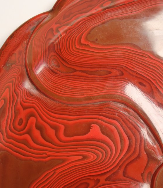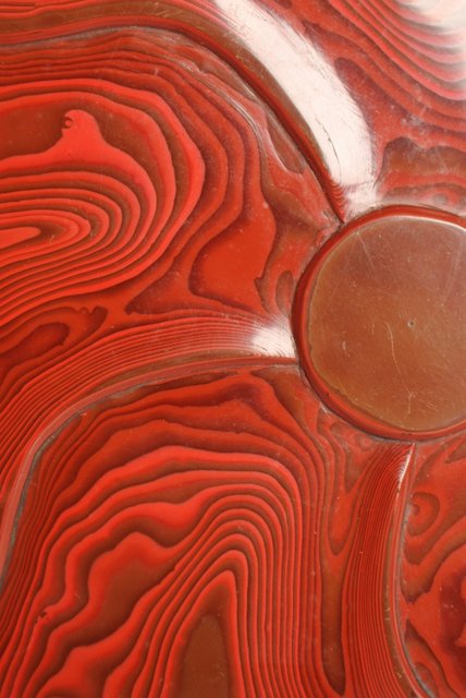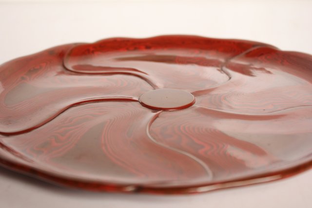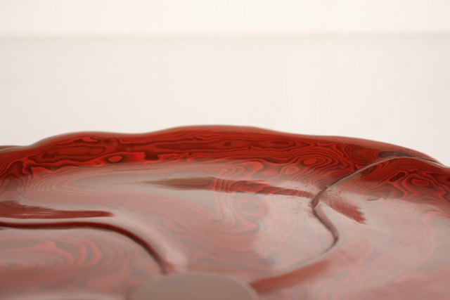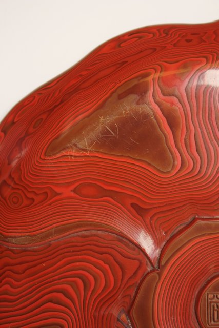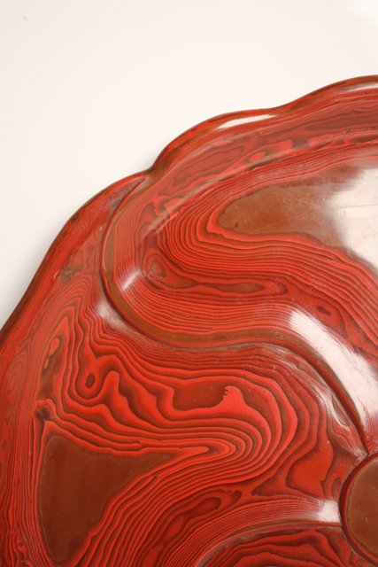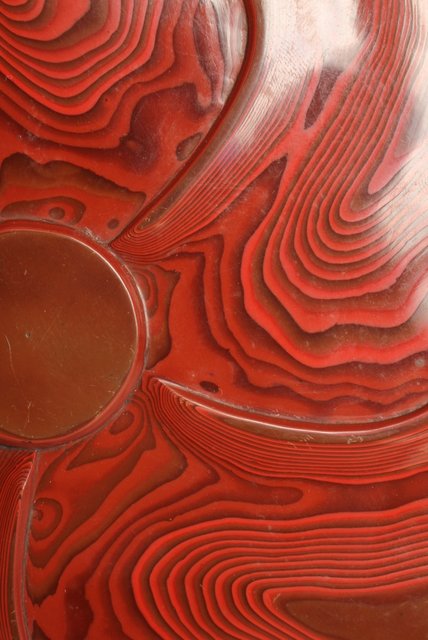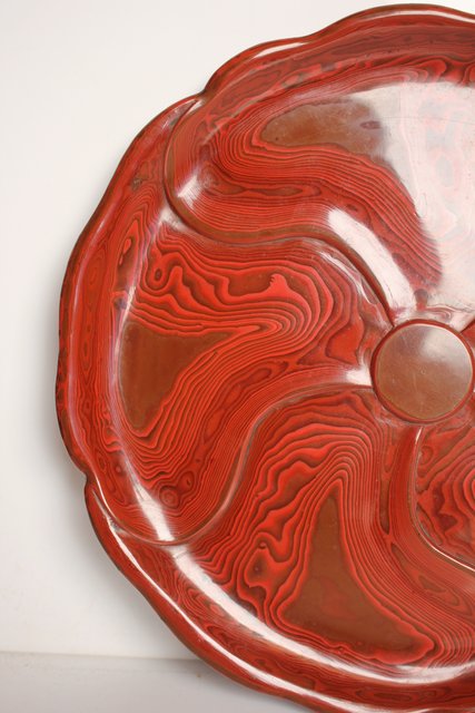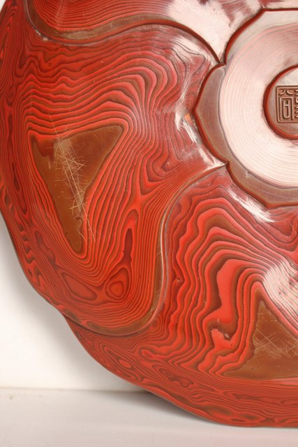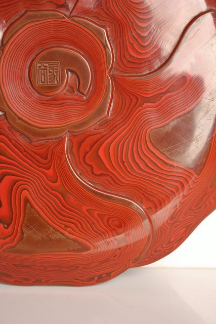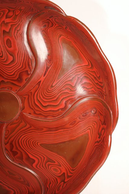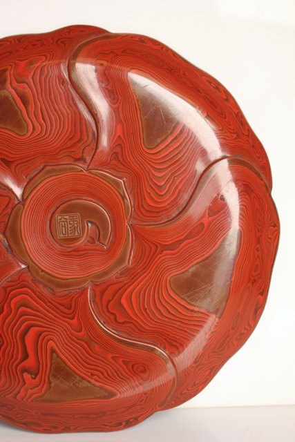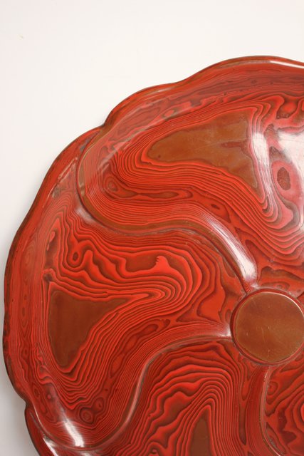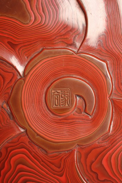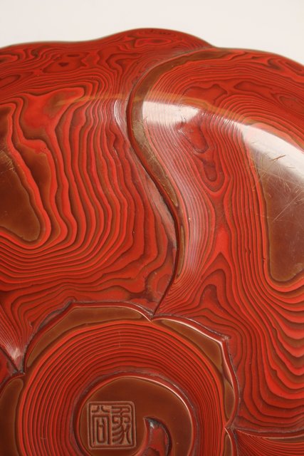 漆を重ねて堆漆とし底から研ぎだして鮮やかな文様を表現します