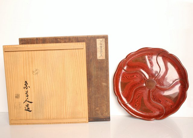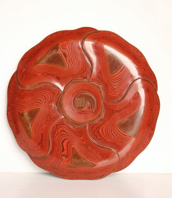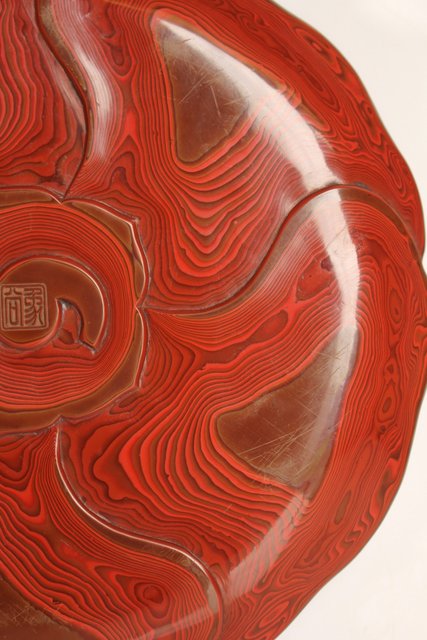 玉緒象谷 堆朱香盆/煎茶盆 K534