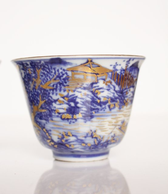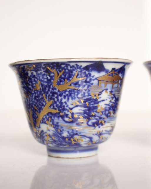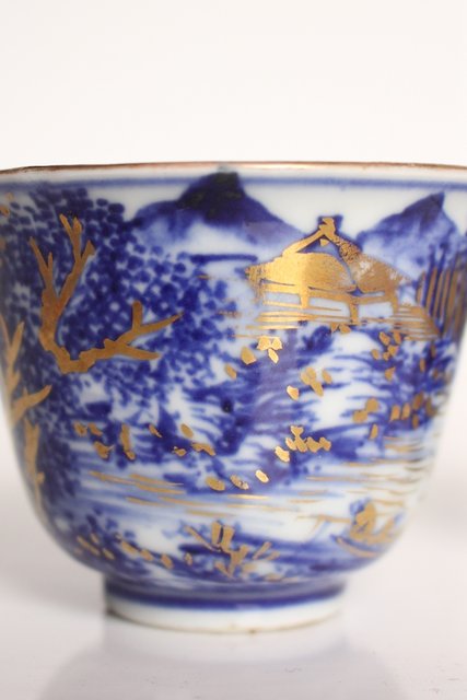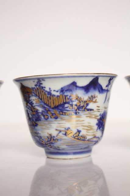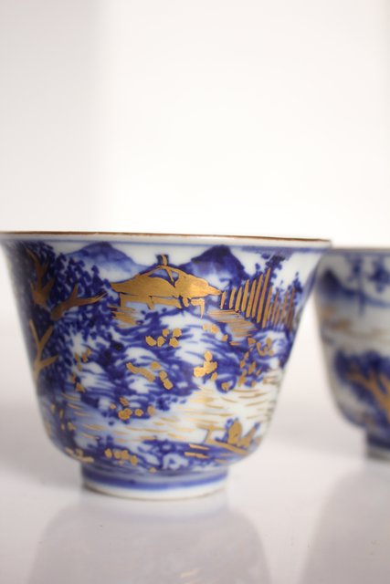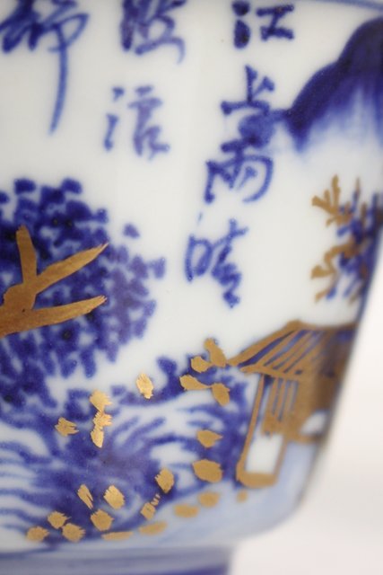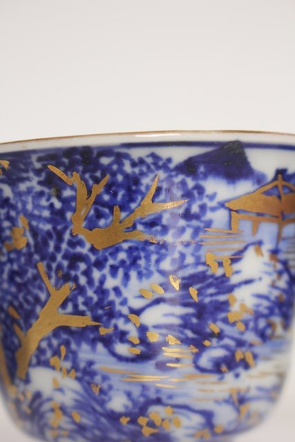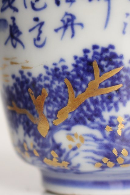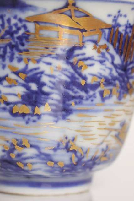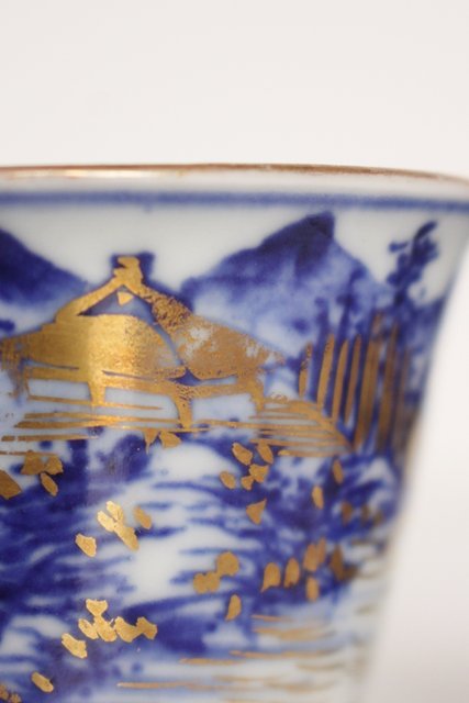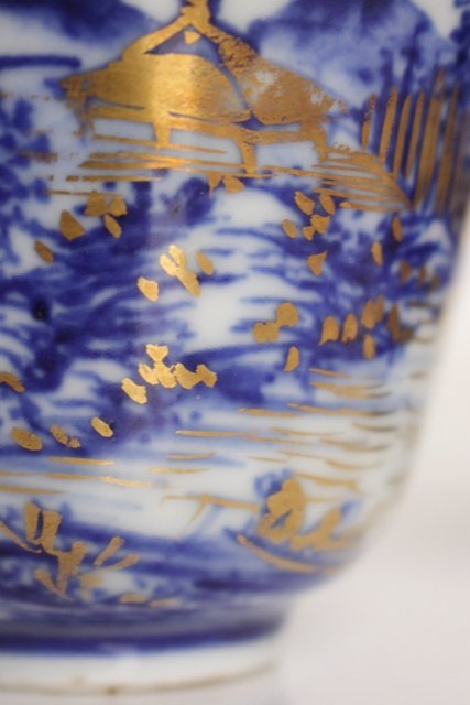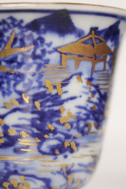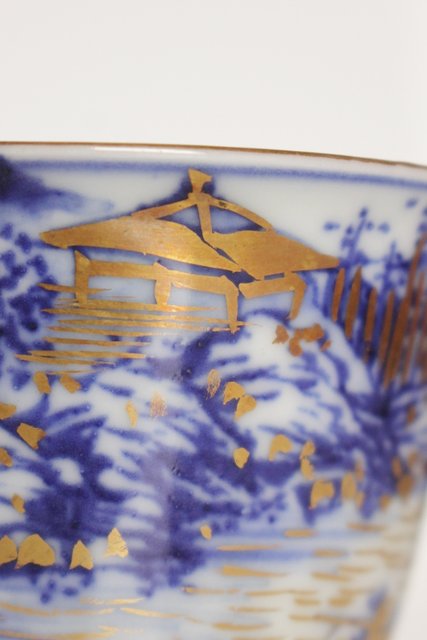 乾山欽製 山水楼閣図 染付金彩煎茶碗 5客 P008