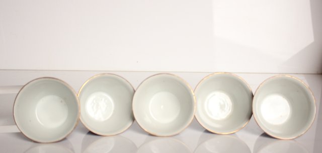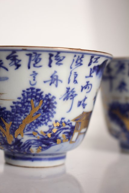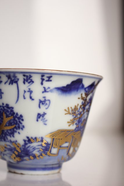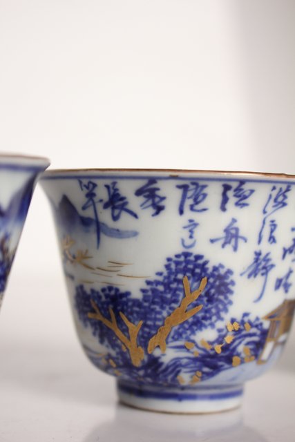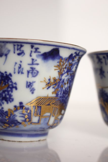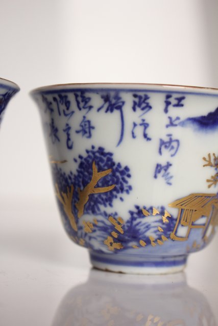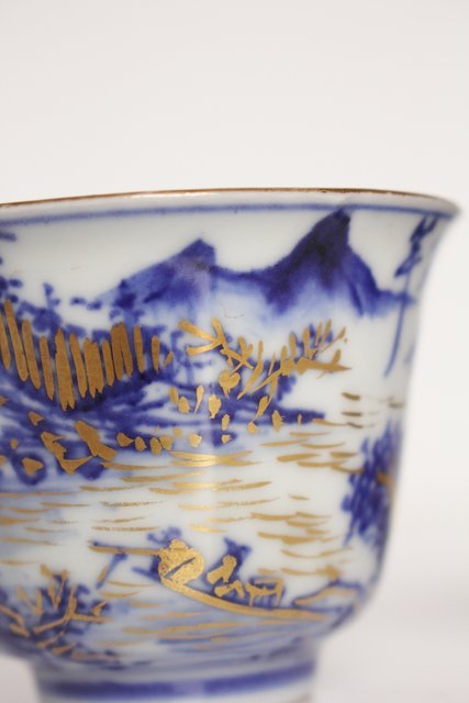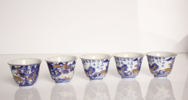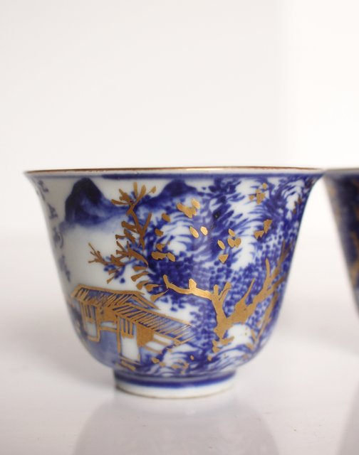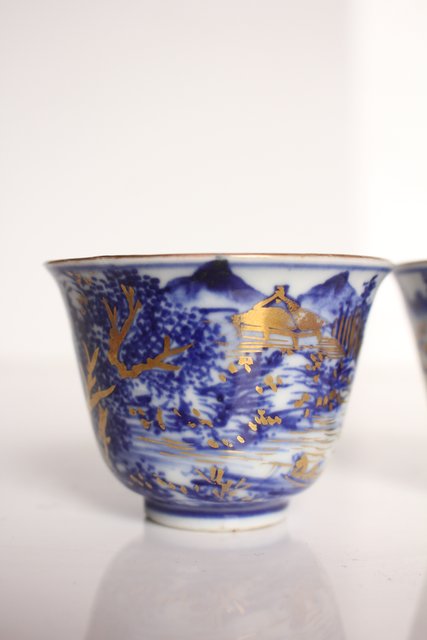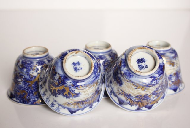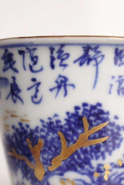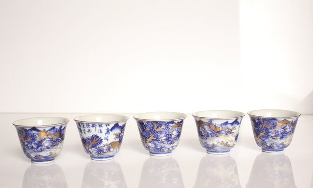 乾山欽製 山水楼閣図 染付金彩煎茶碗 5客 P008