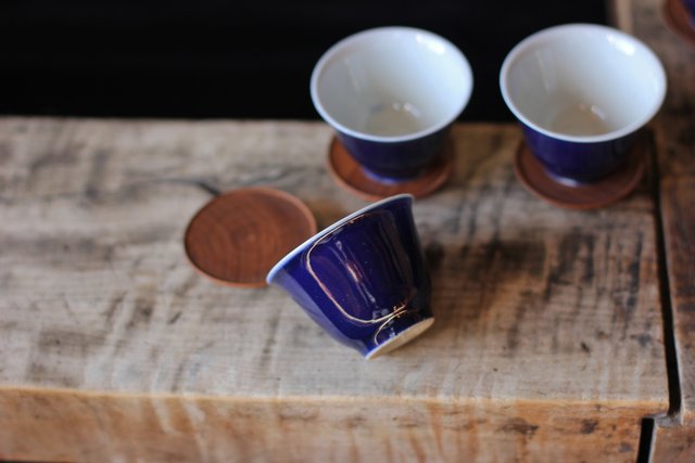 瑠璃釉が側面全体に施された美しい煎茶碗