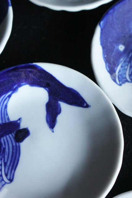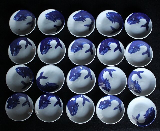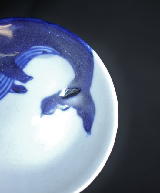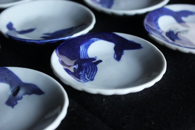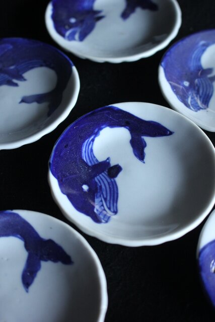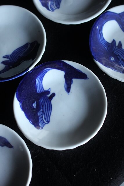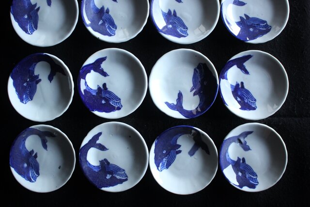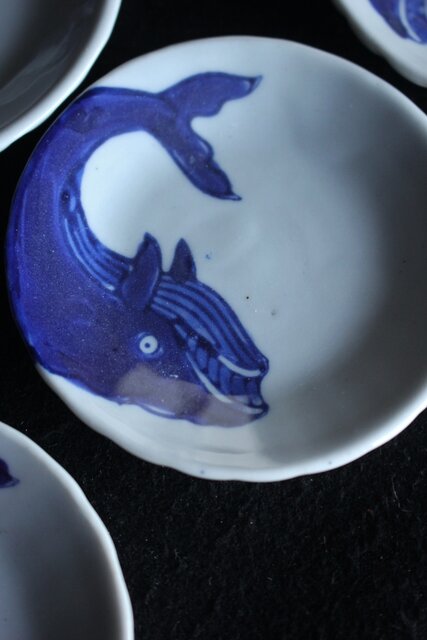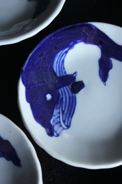 鯨をデザインとした染付ですが 裏にまで書き込みを伸ばし