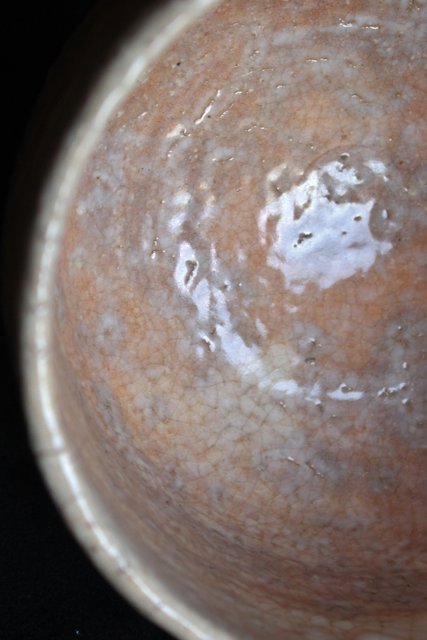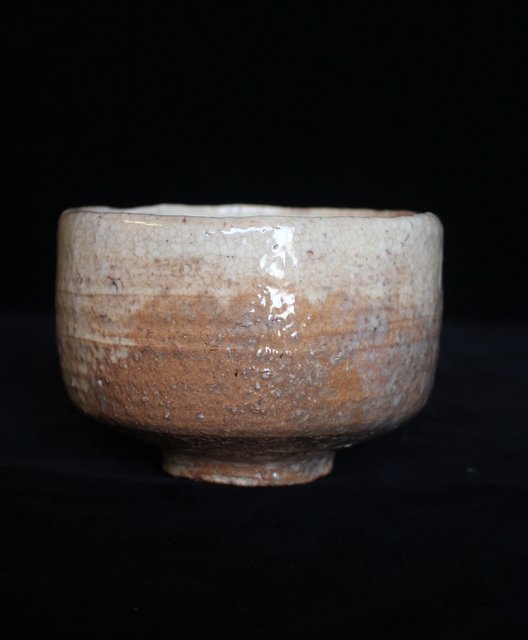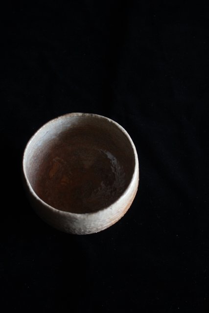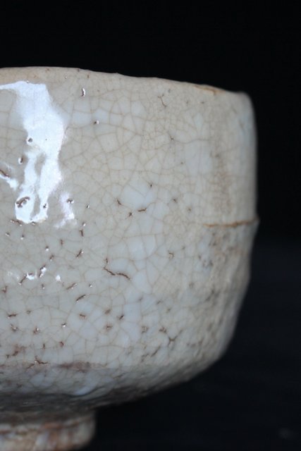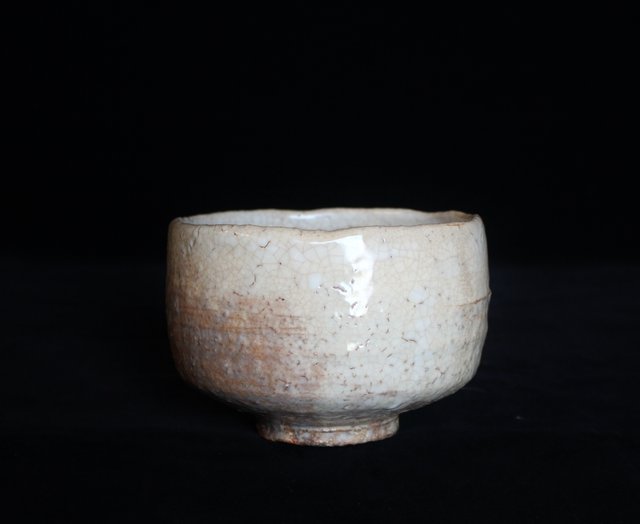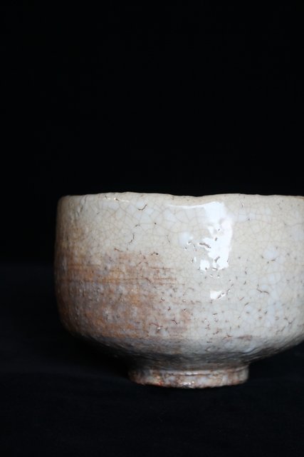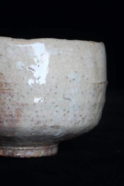 全体的に白い休雪特有の釉薬がかかった景色の良い茶碗です