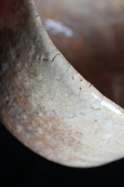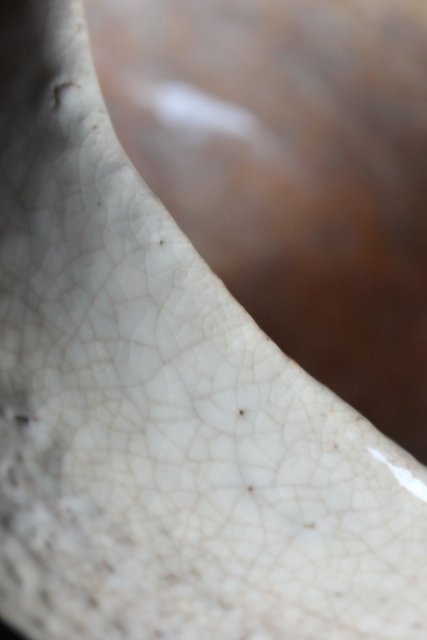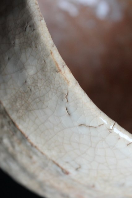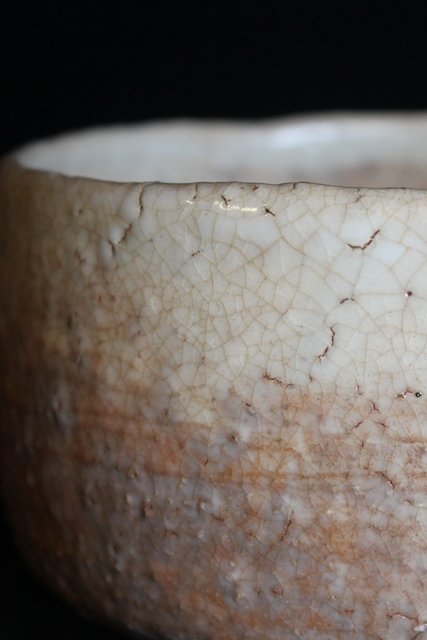 萩焼に美しい貫入 白い独特の釉薬が評価されています