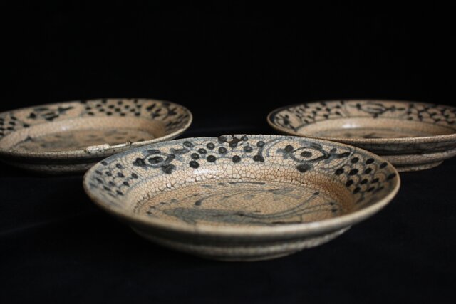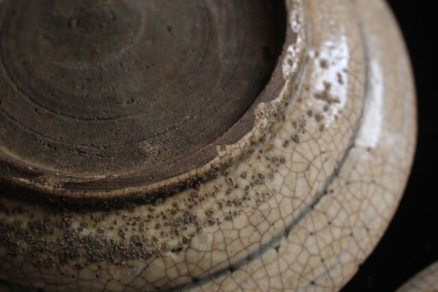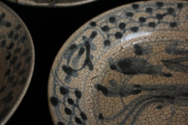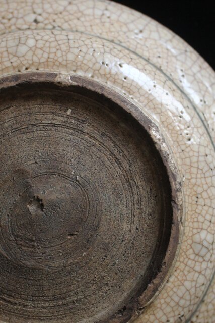白濁釉に貫入が美しく ひっつきの景色など侘びの皿です