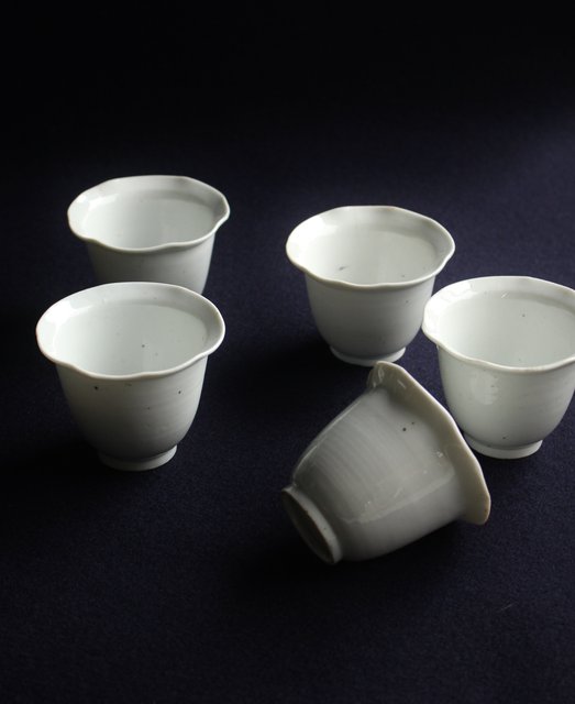 古伊万里 輪花 柿右衛門白磁向付 5脚1組 P152