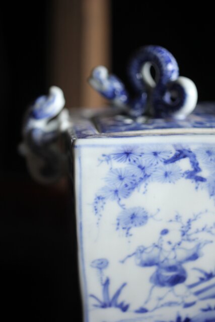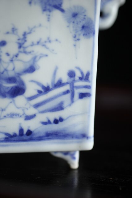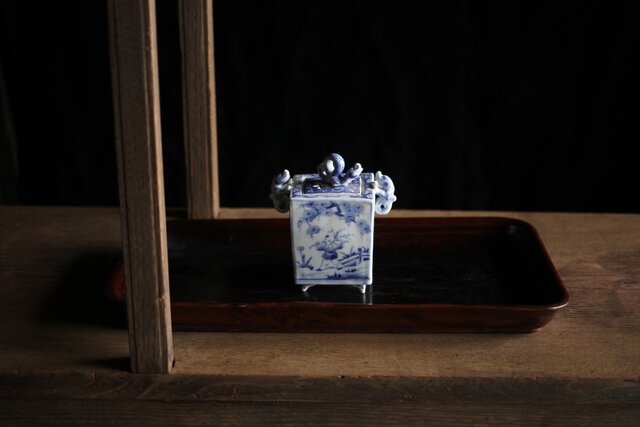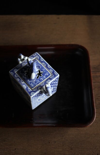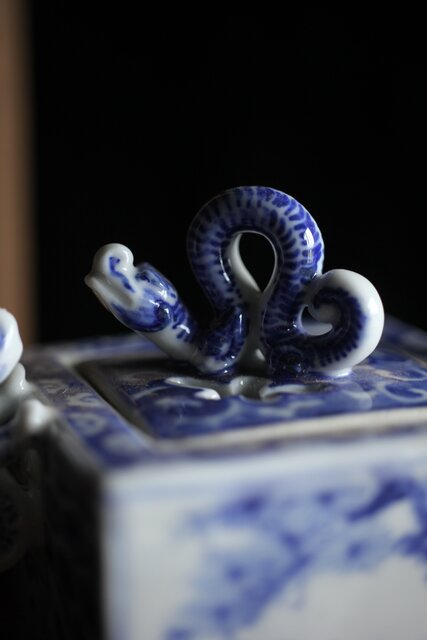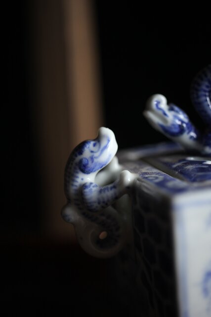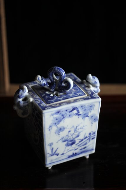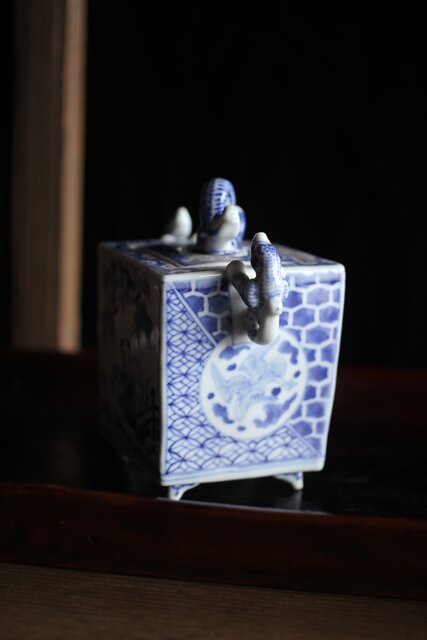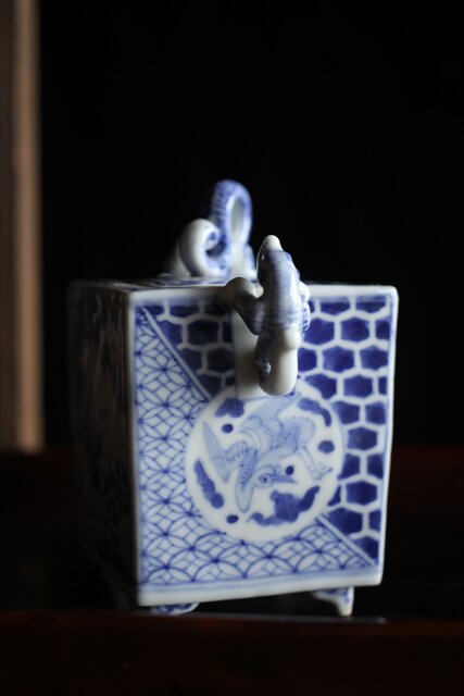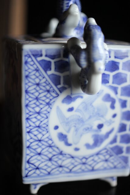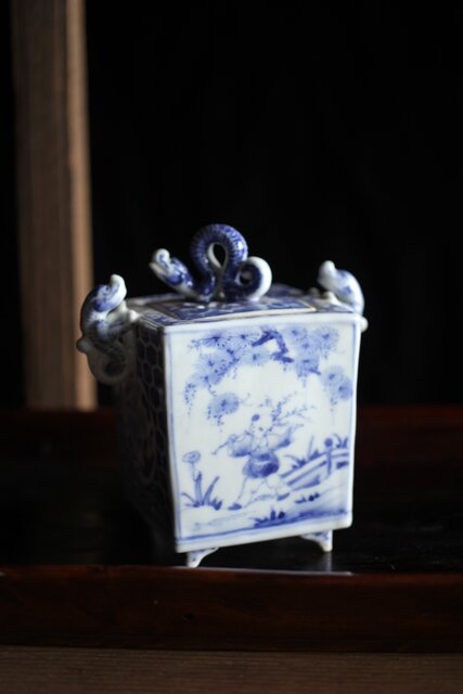 三浦竹泉造 龍耳 祥瑞手染付四方香炉 P189