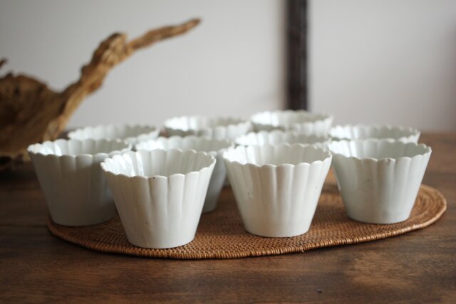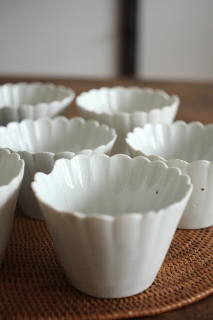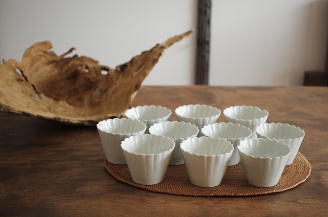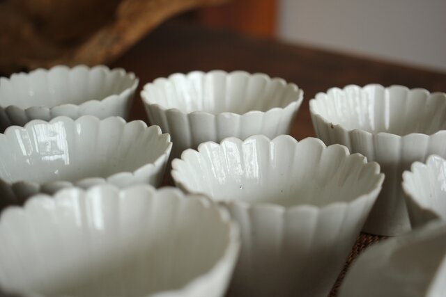 古伊万里白磁 菊型向付 10客1組 P204