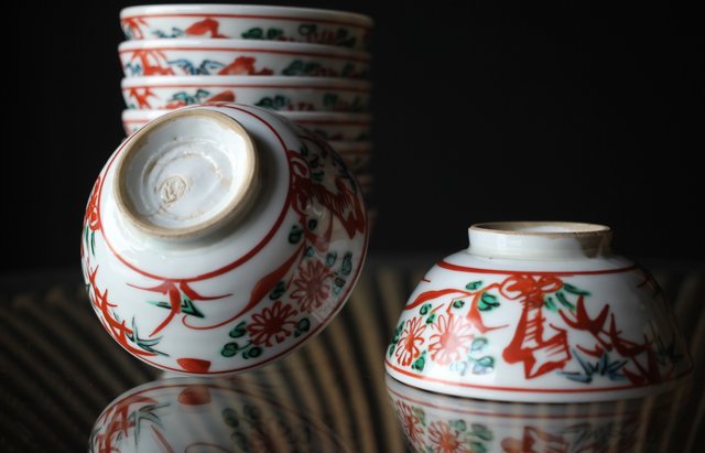 六兵衛による呉須赤絵の茶碗 向付