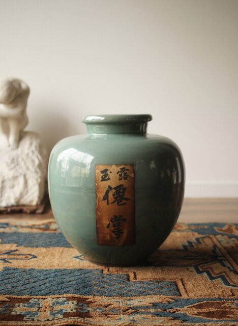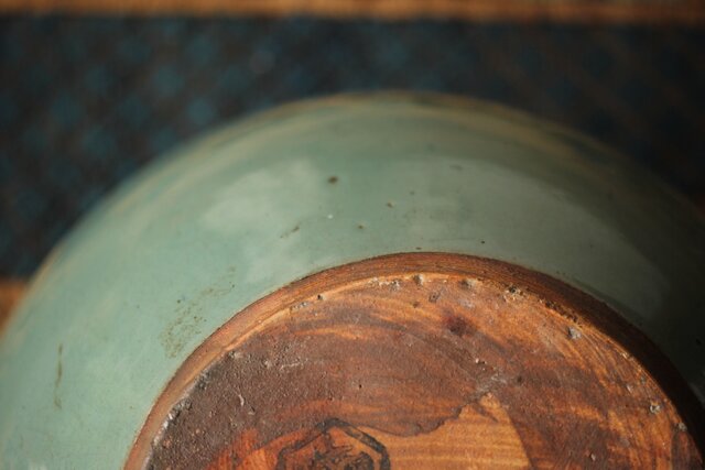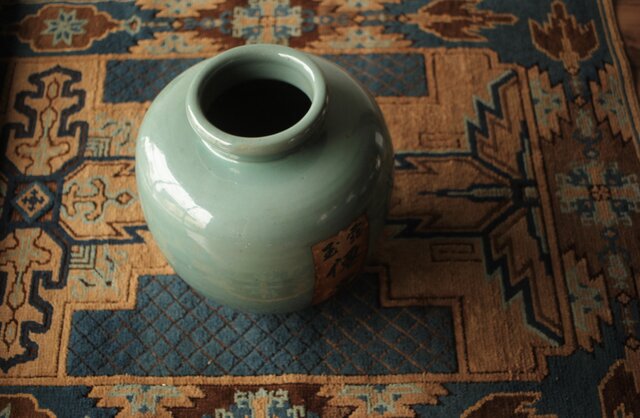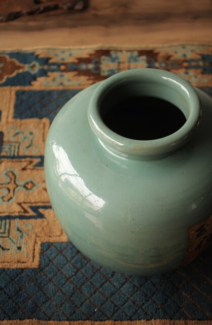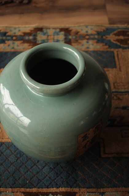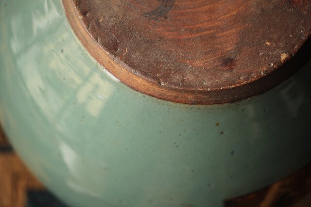 エメラルドグリーンのような柔らかい色彩の茶壺