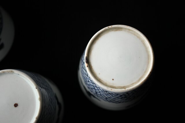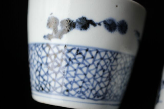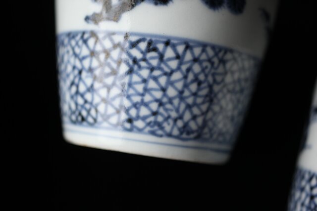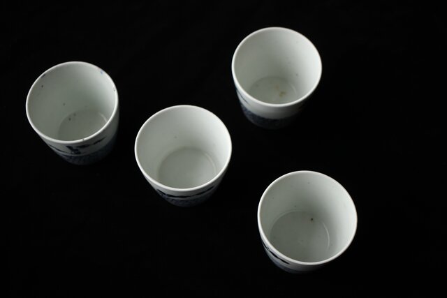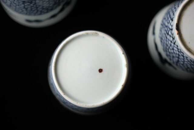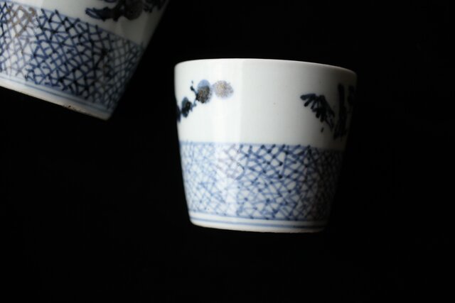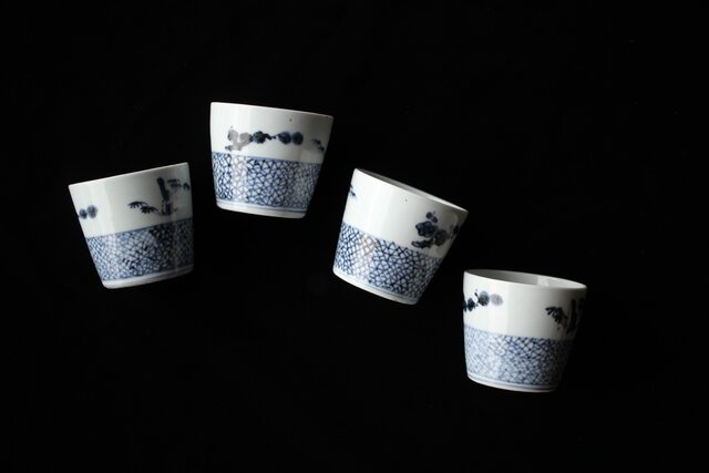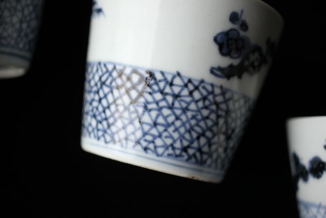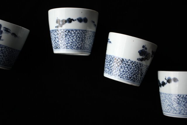 松竹梅 氷裂地紋 染付古伊万里猪口 四客 P449