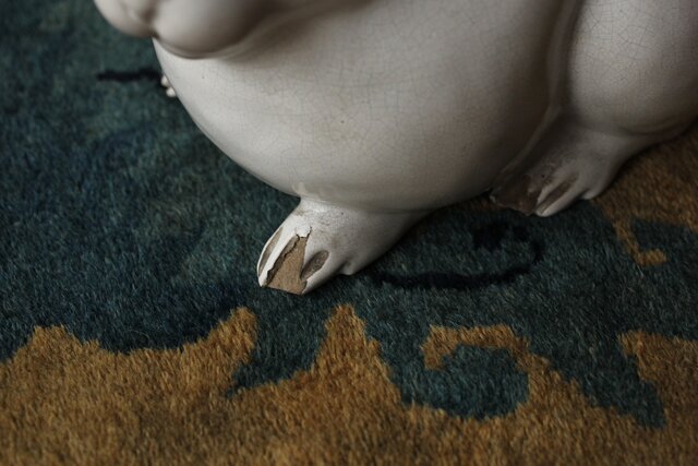 全体的に貫入 足に傷ですが 愛らしい置物です