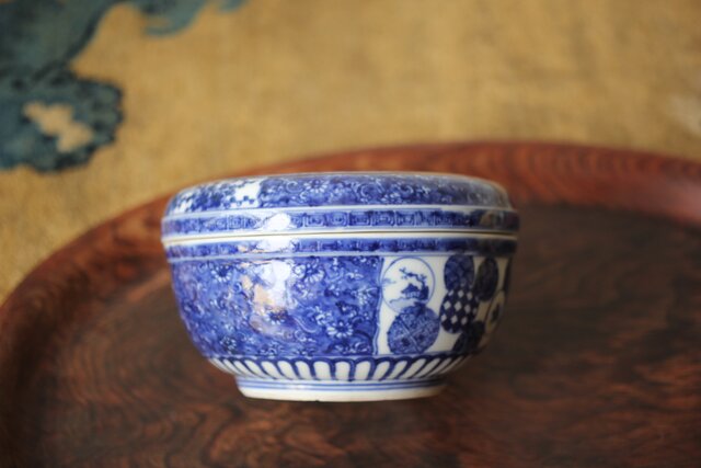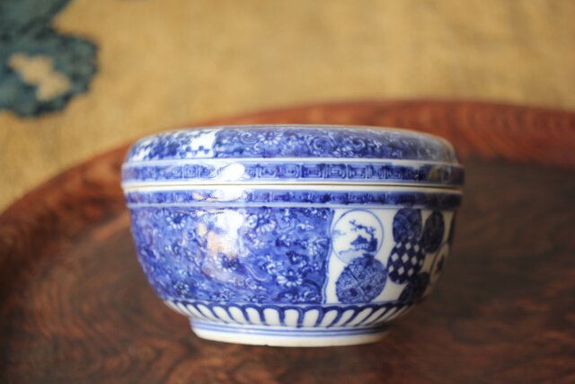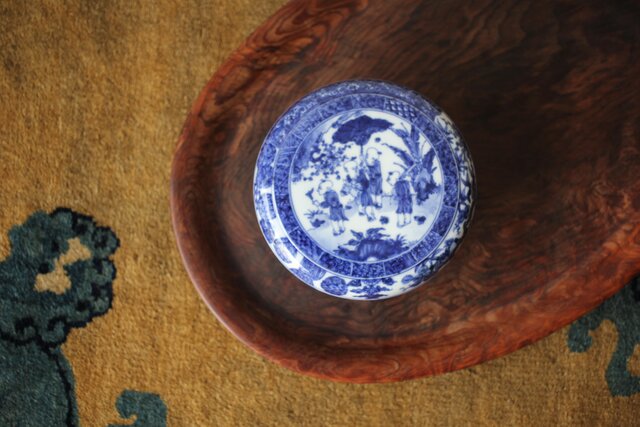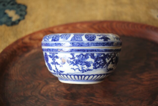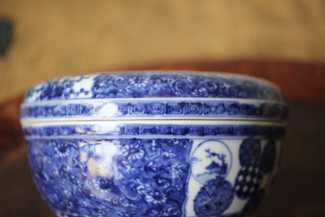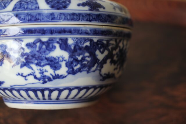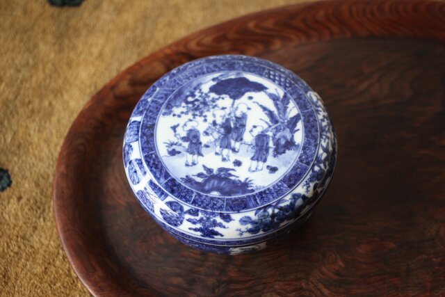 清水七兵衛 祥瑞意 染付蓋物 P479