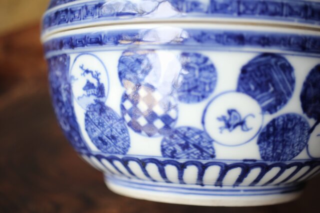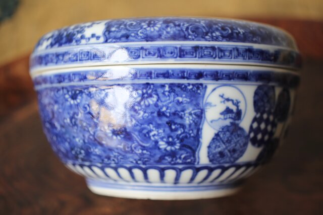 しっかりとした絵付けで大振りの素晴らしい蓋物です