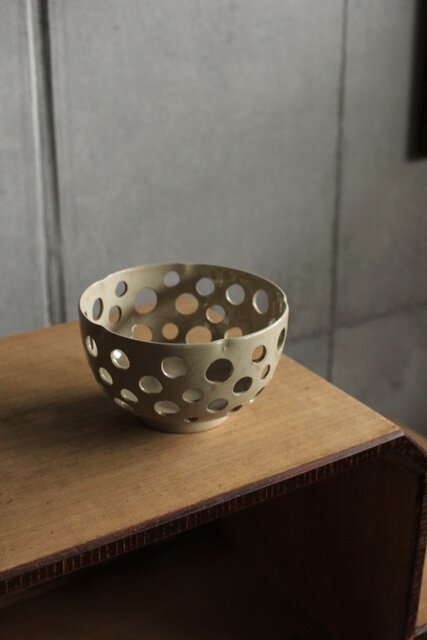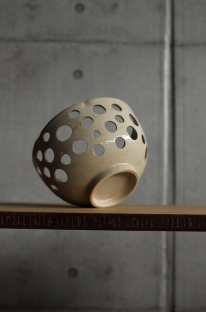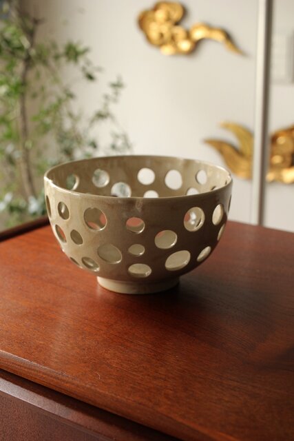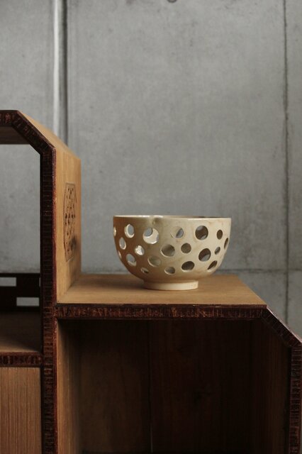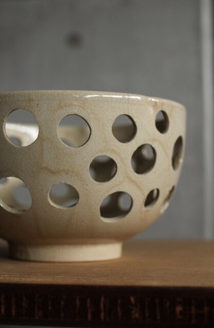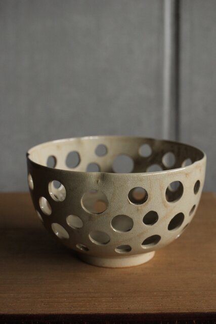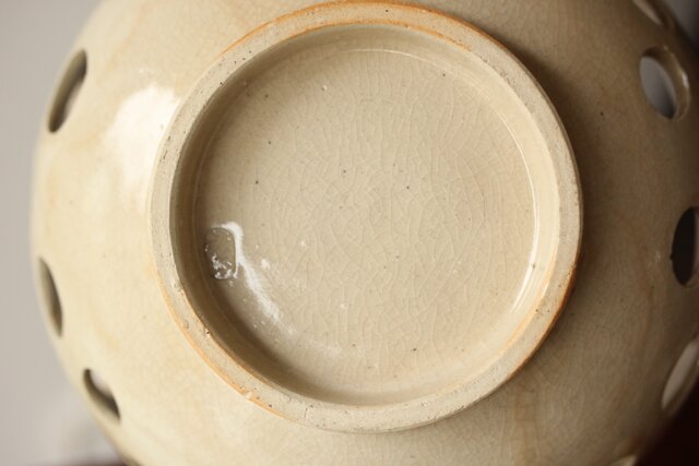 大野鈍阿 仁清白釉円孔透鉢 P524