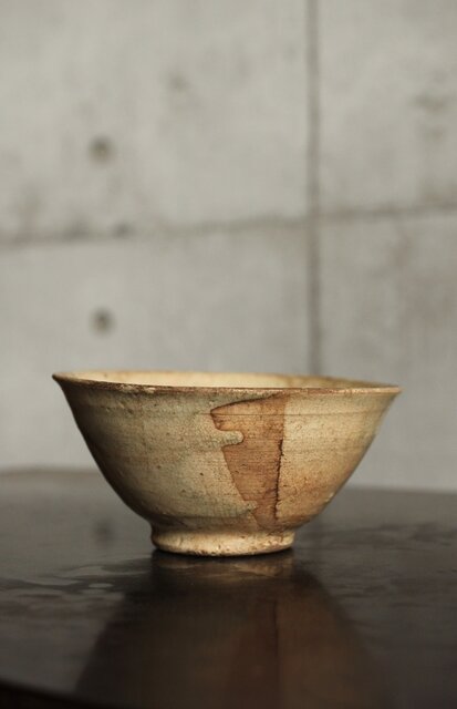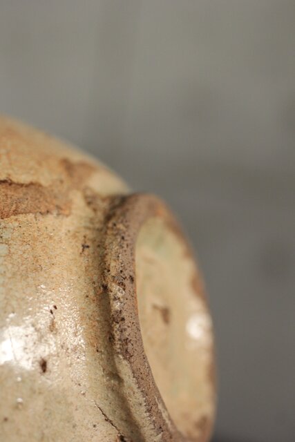 高台は竹節状に削り出し 高台内に低く兜巾が立っている 朝鮮茶碗のルールにかなった形状