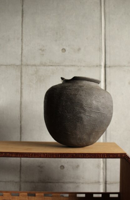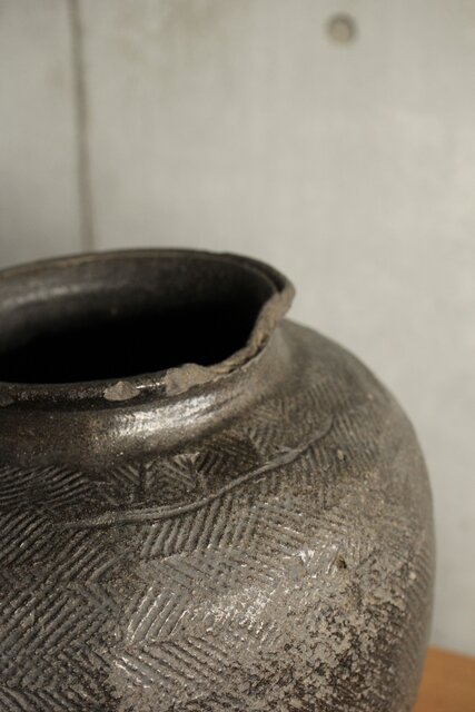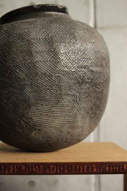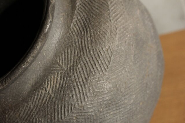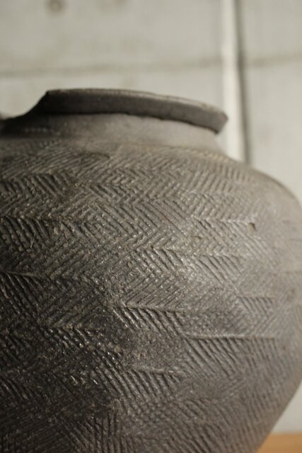 上部は葉型の叩き痕 下部は綾杉や斜めの文様になっていますが