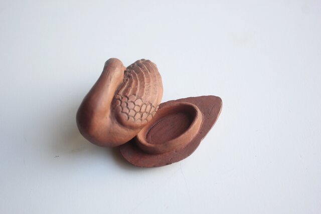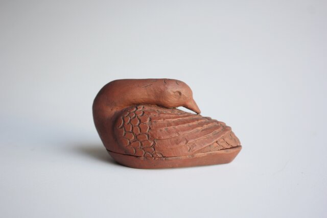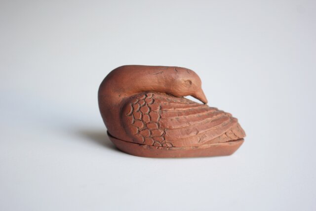 渡辺弥兵衛 初代 常滑元光斎か 村田長七作か 朱泥 鴨香合 P591