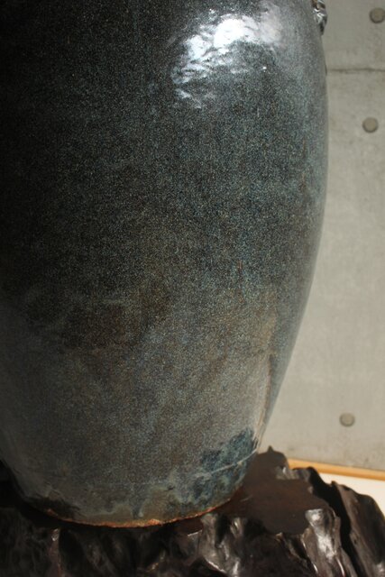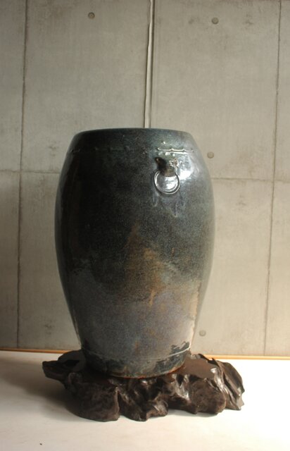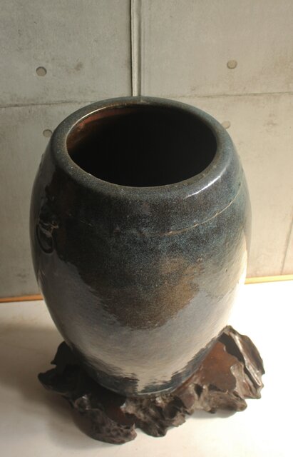 唐物 宜興縣鼎山葛木春造 紫砂に海鼠釉を施釉した美しい大型の甕