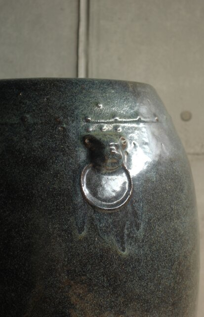 唐物 宜興縣鼎山葛木春造 獣環 擂座 中国宜興紫砂 朱泥 海鼠釉 大型 甕 P599