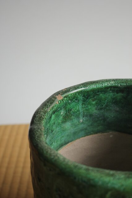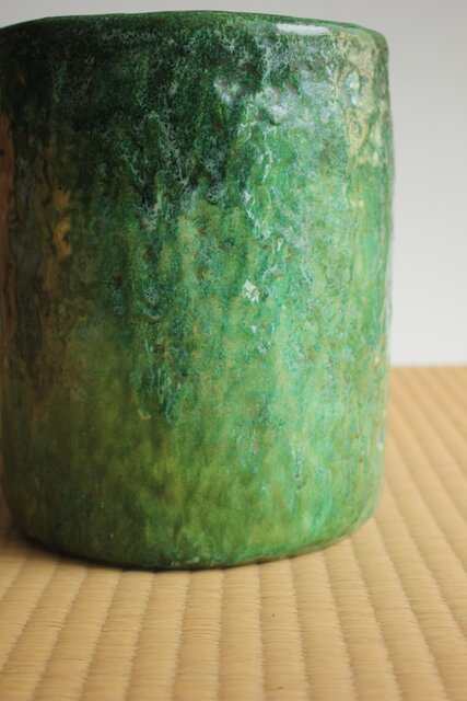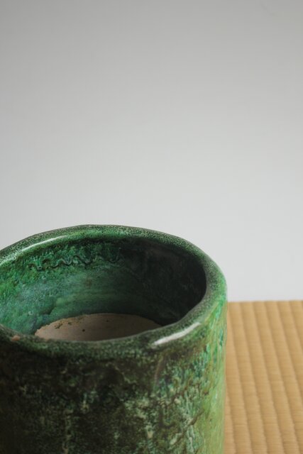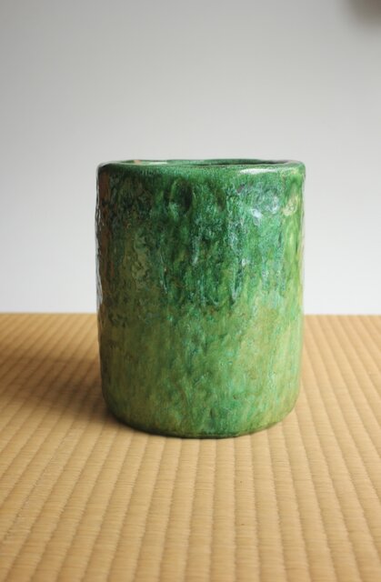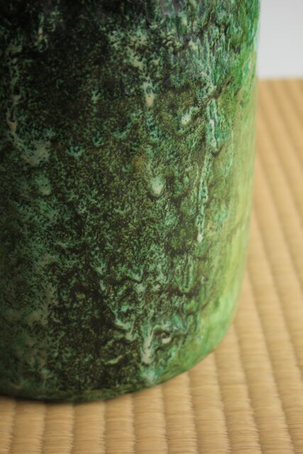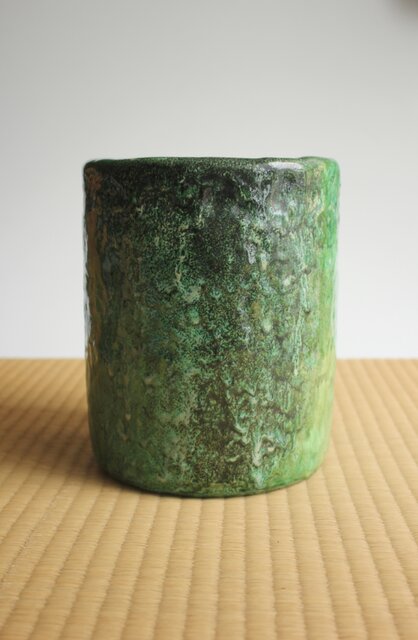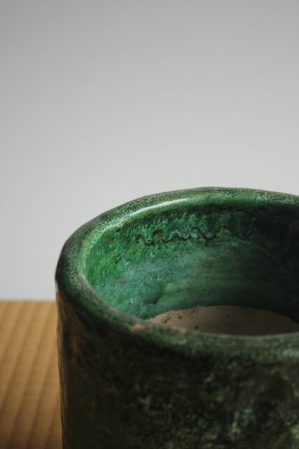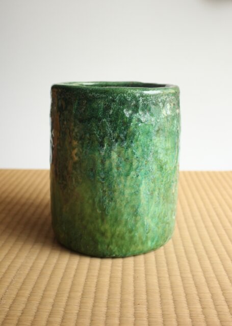 大胆に釉がけをし 自然に釉薬が流れるさまを景色とした 豪快な作品