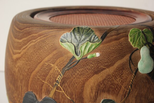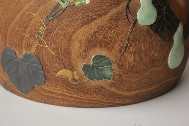非常に興味深い細工で 蒔絵を陶器の象嵌を意匠とします