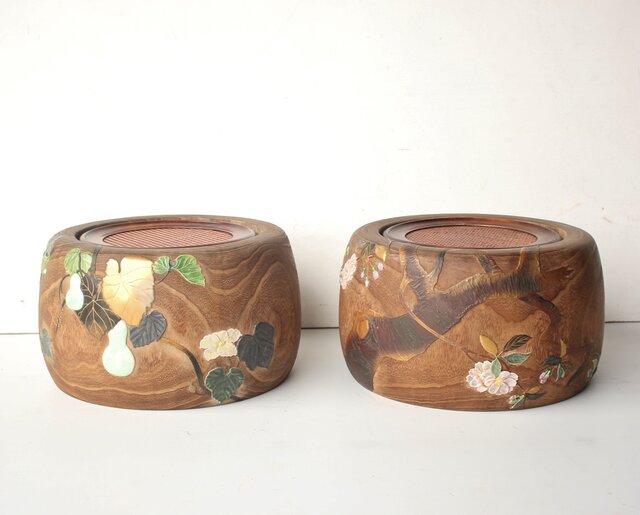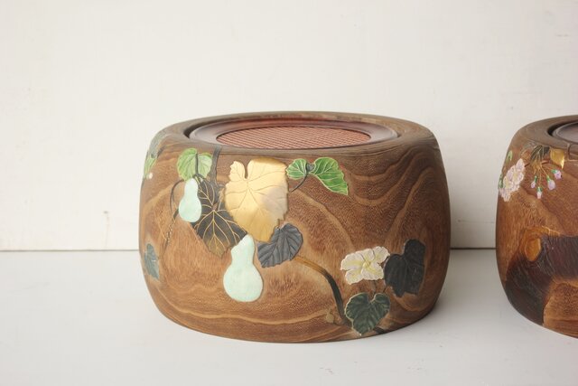 三浦乾也 桜と瓢箪文 火鉢 一対 P641