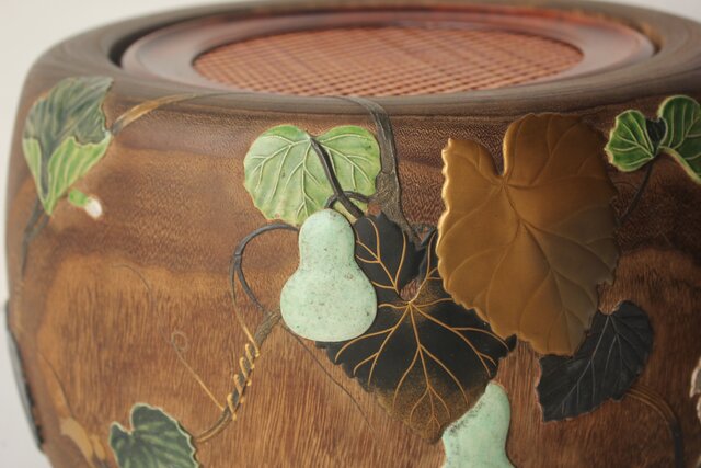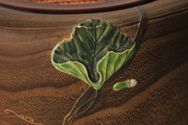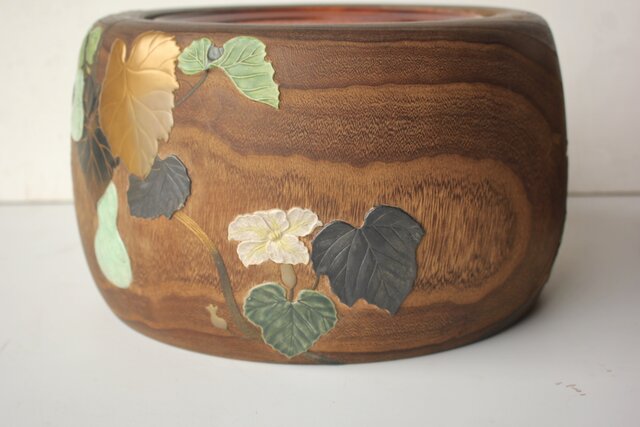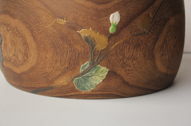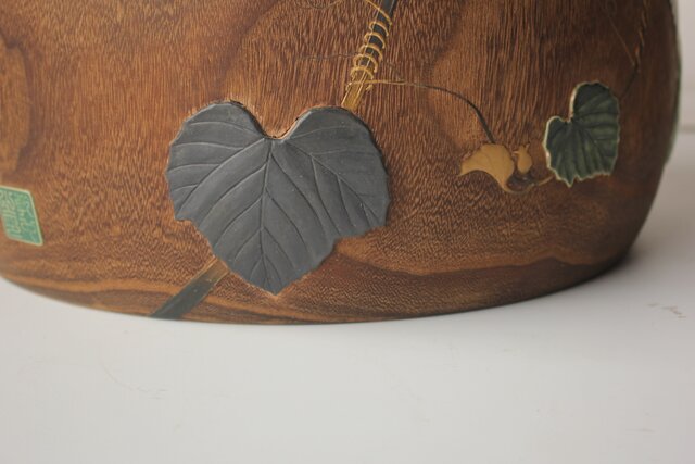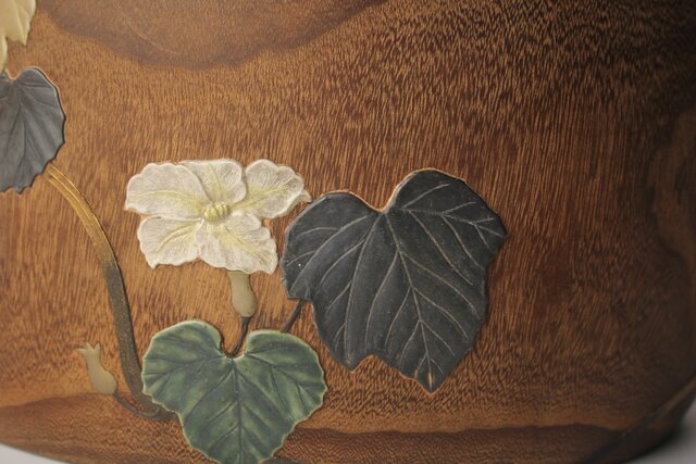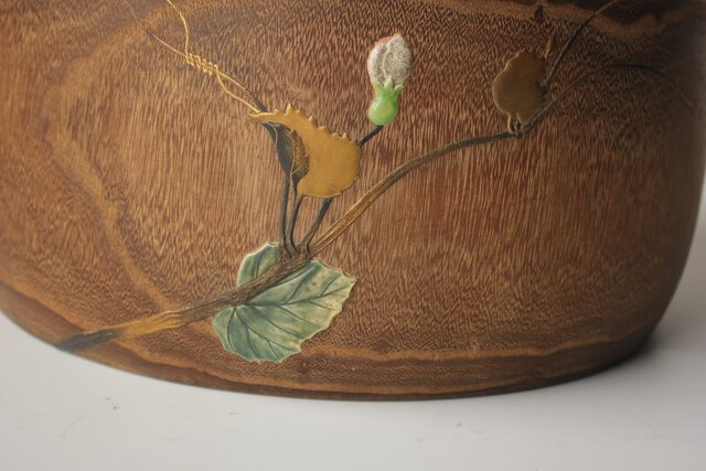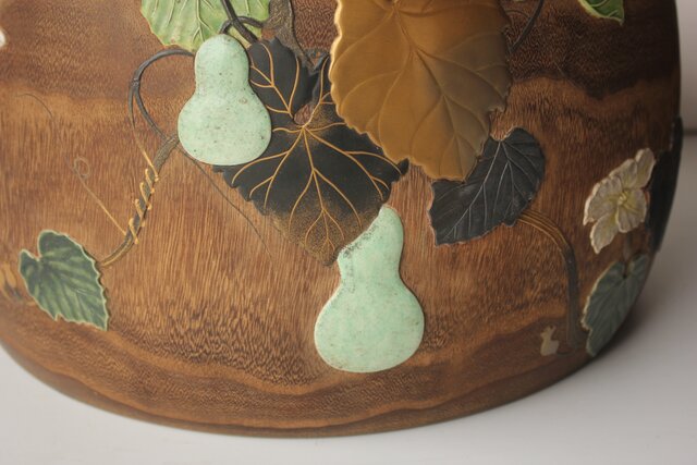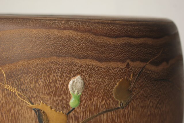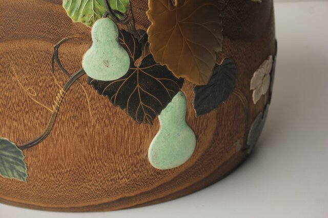 非常に興味深い細工で 蒔絵を陶器の象嵌を意匠とします