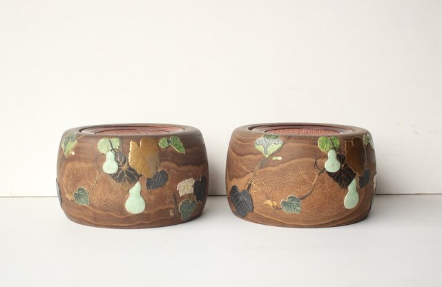 三浦乾也 瓢箪文 火鉢 一対 P642