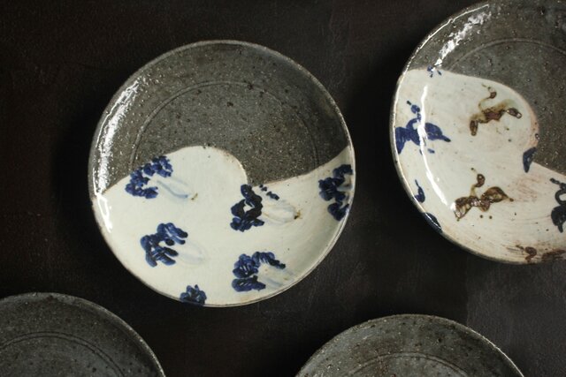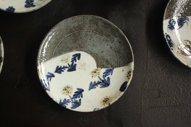 河村蜻山 草花絵変中皿 五客 P645