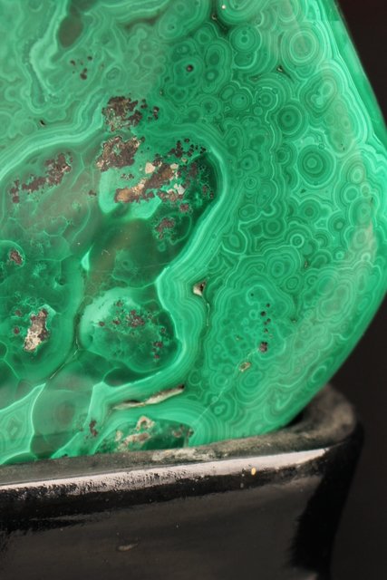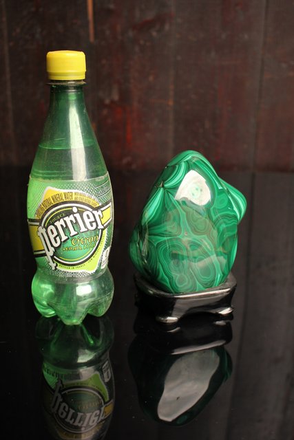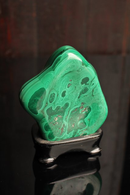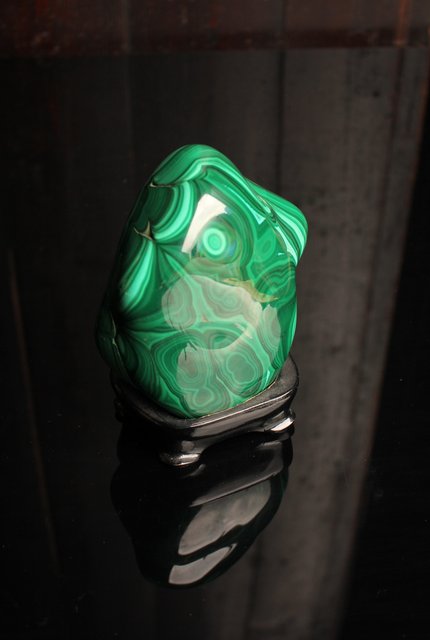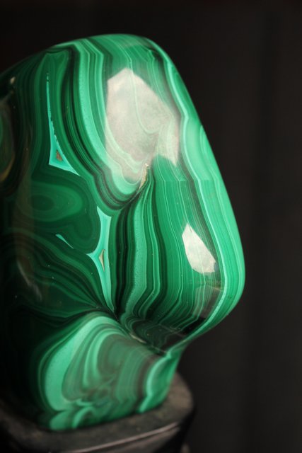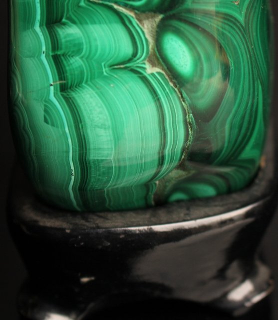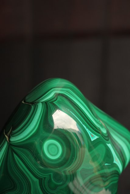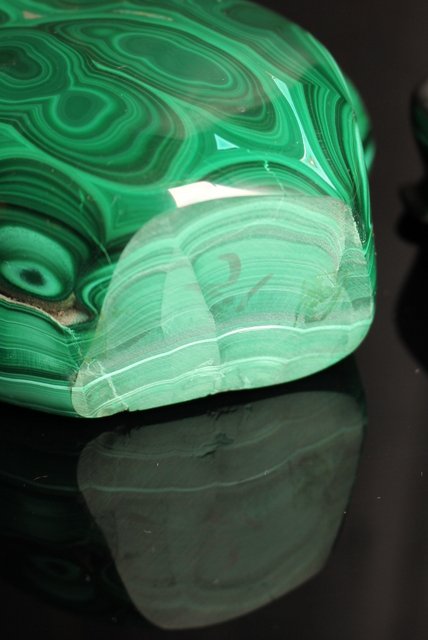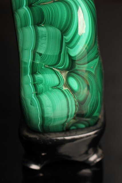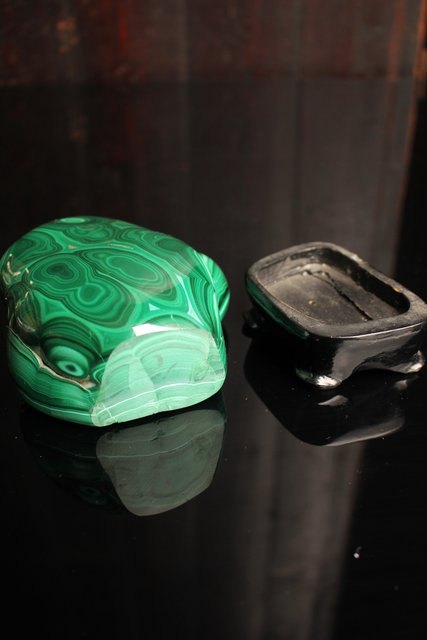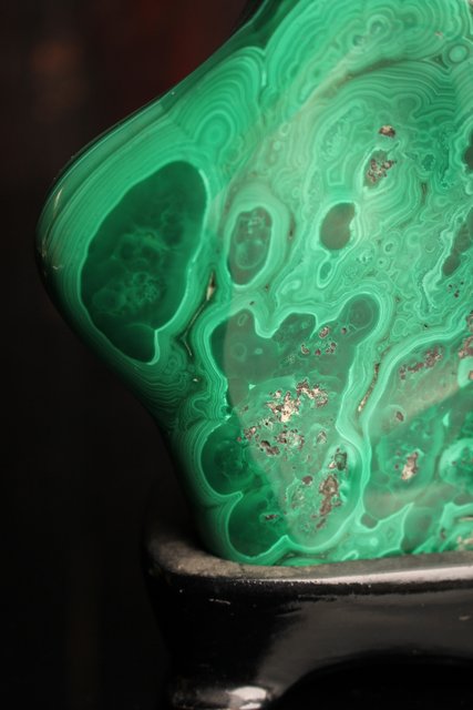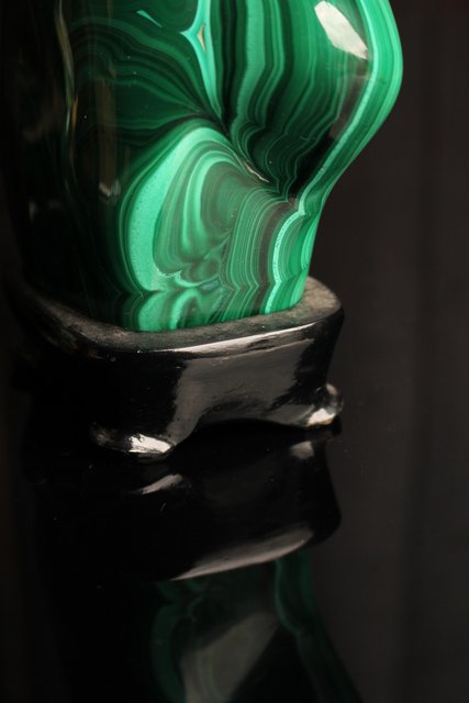 自然の模様とは思えない美しい孔雀石の置物
