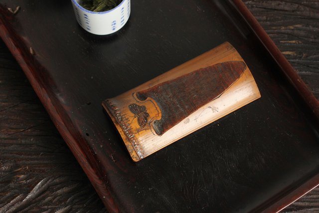 時代竹彫茶合/茶箕 U065