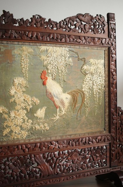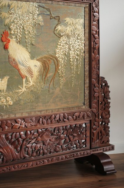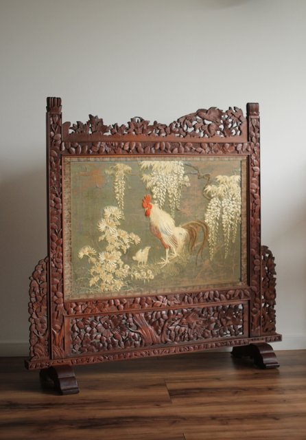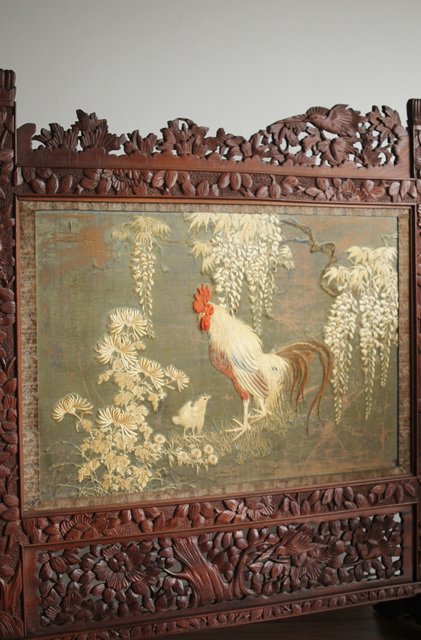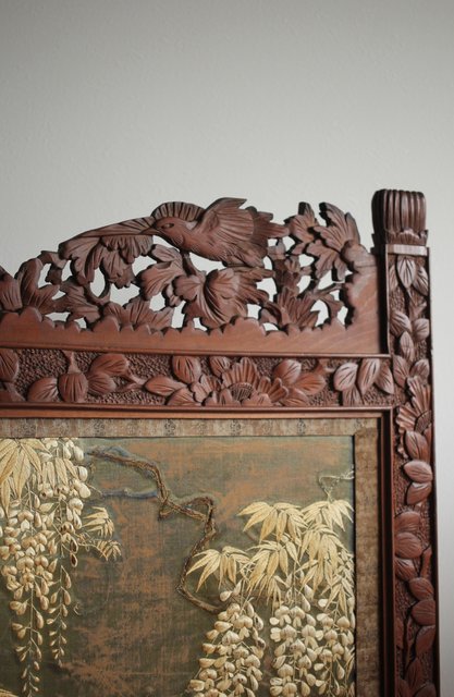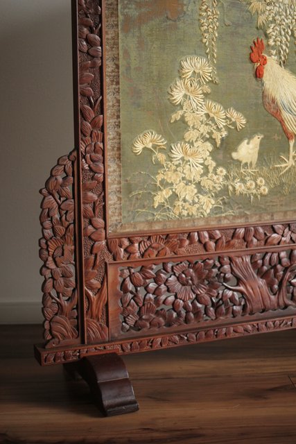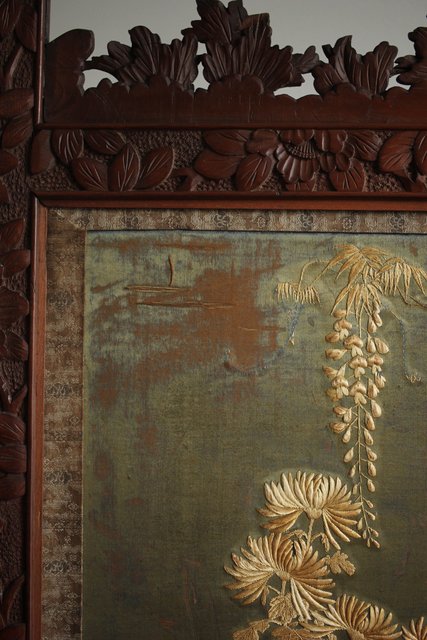 日光彫と明治刺繍の衝立 X260Y