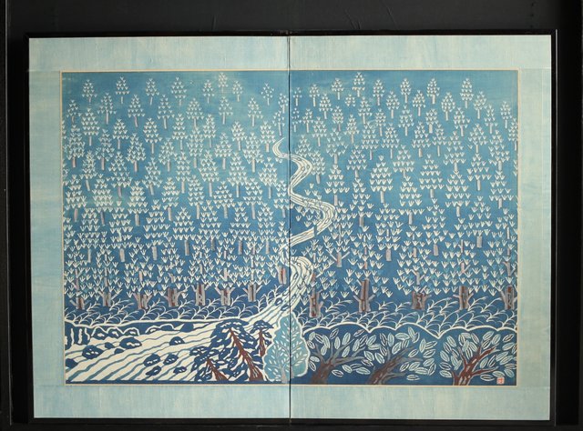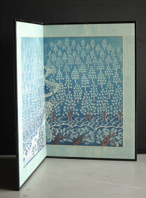 民藝運動 日下田博 藍染屏風 U234