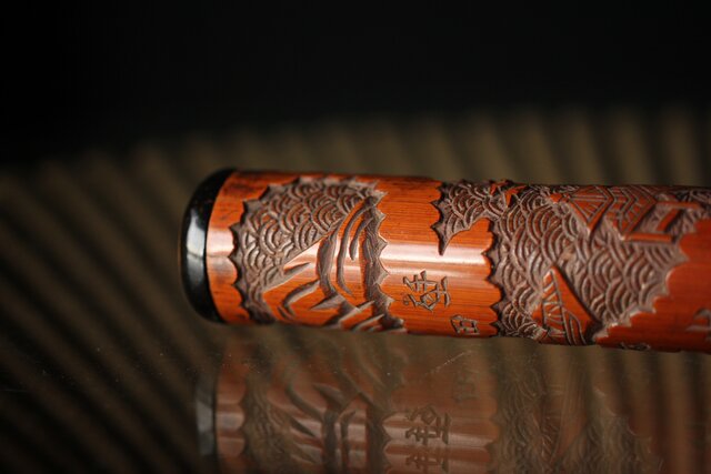 近江八景をデザインとしたユーモアある竹彫
