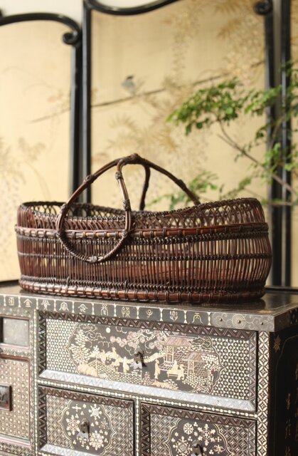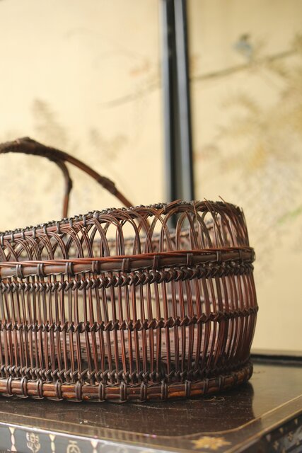 唐物写しの見事な編み込みの竹工芸になります