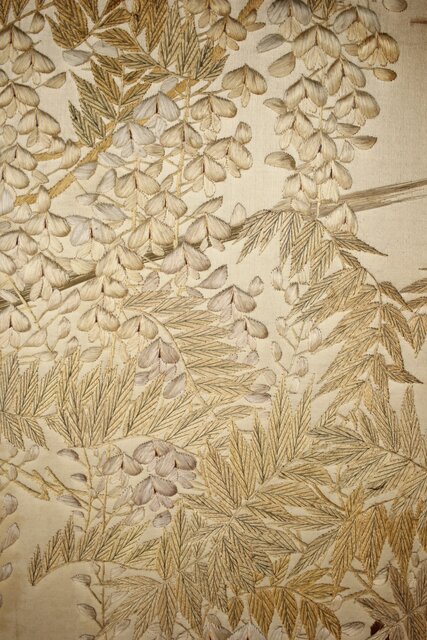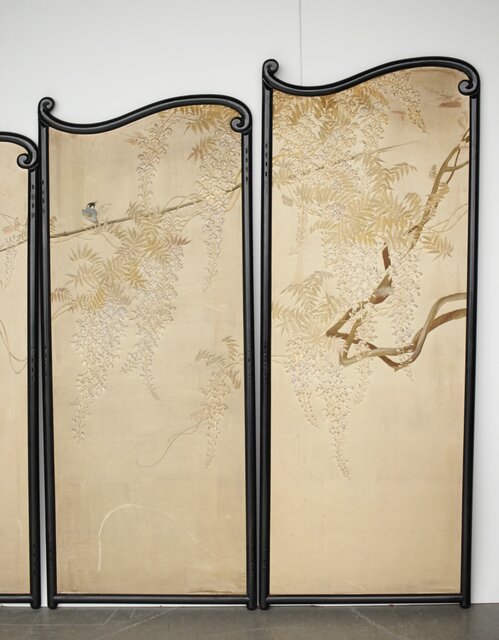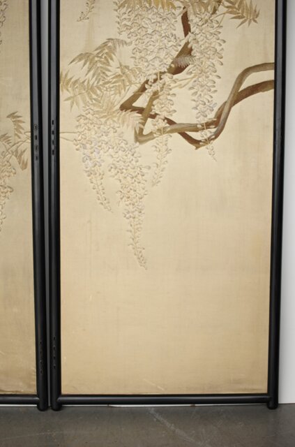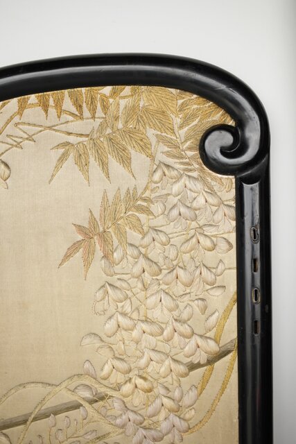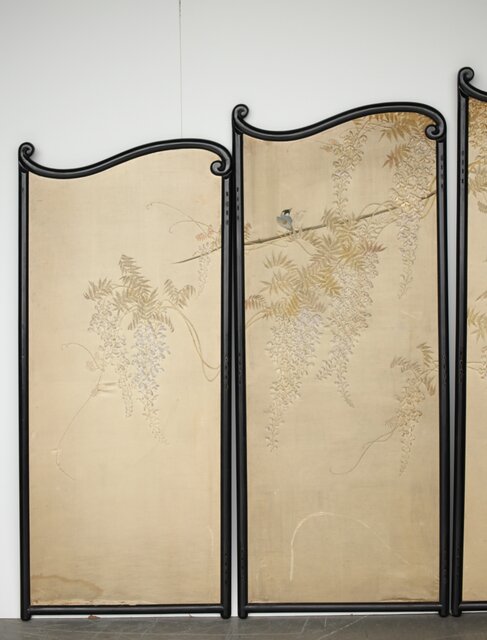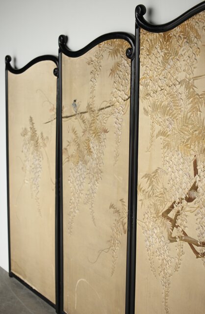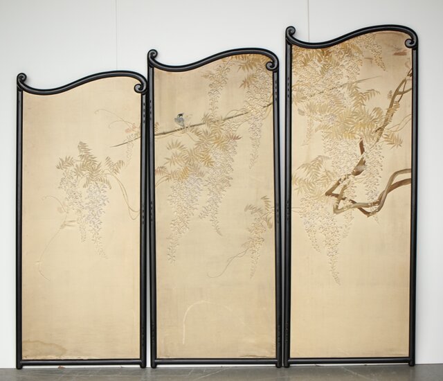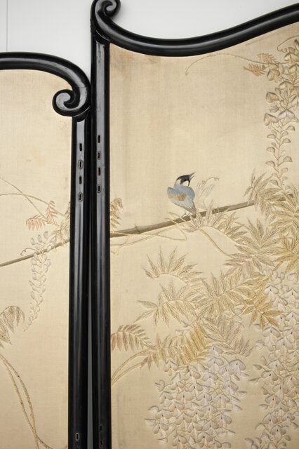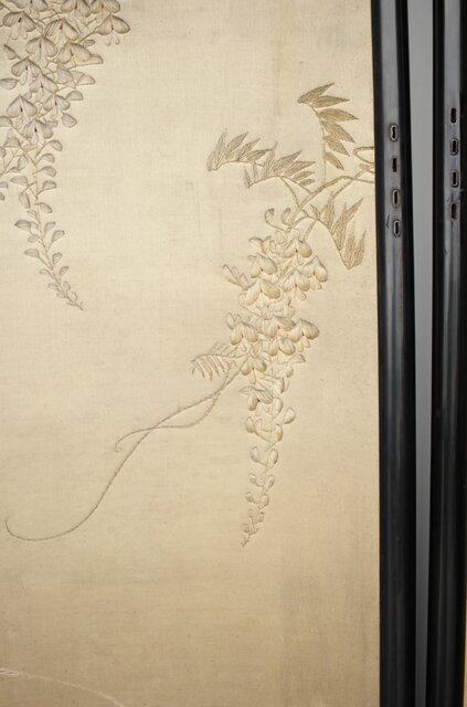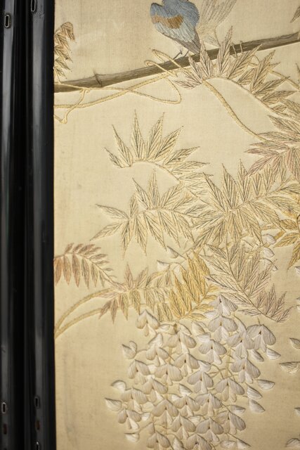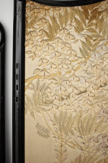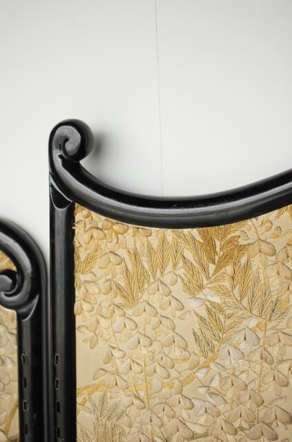 意匠明治刺繍 三枚屏風 Z425 美しい仕立て 初見です