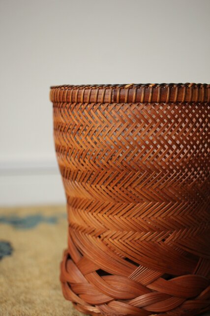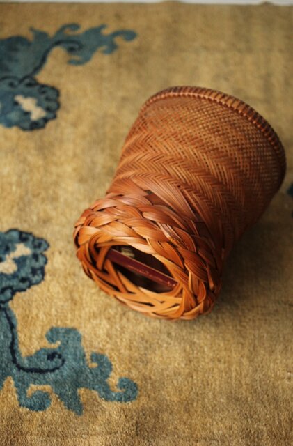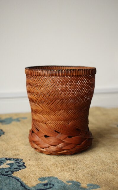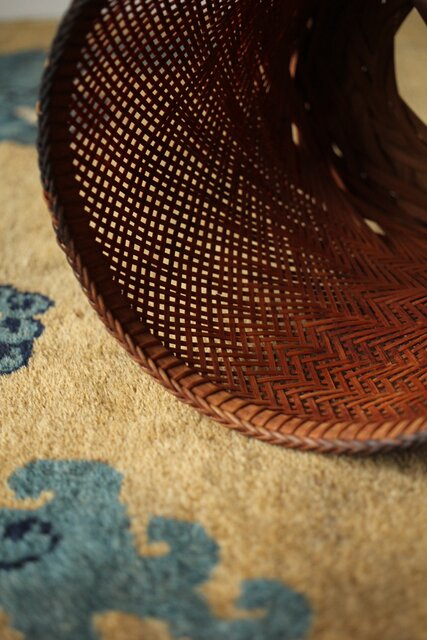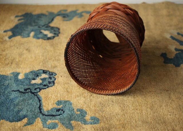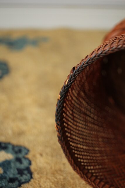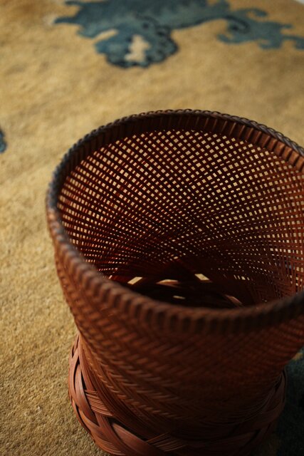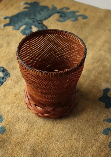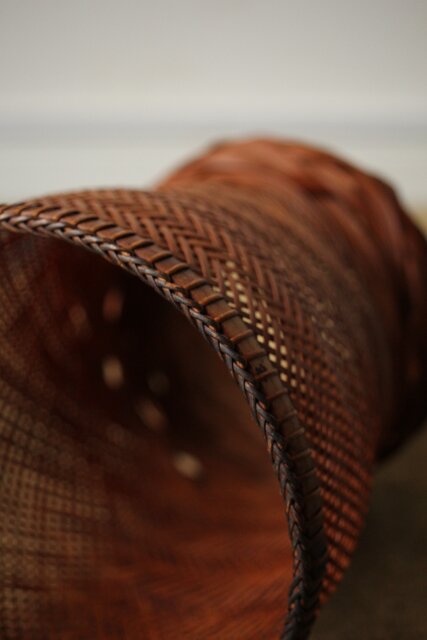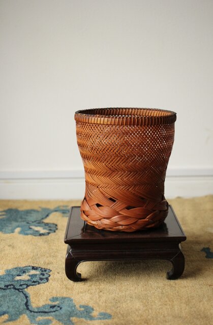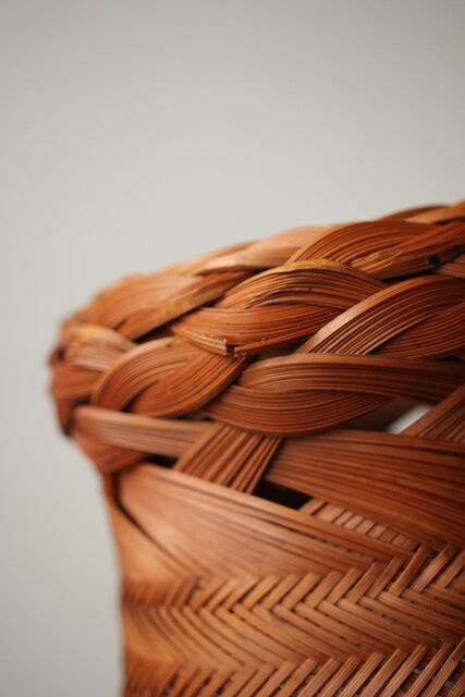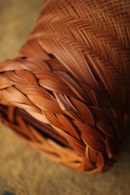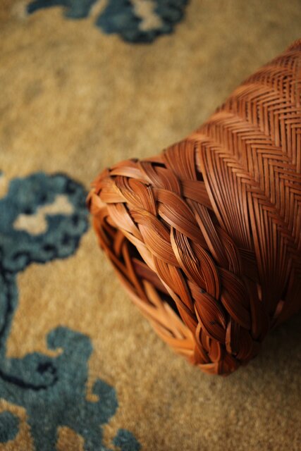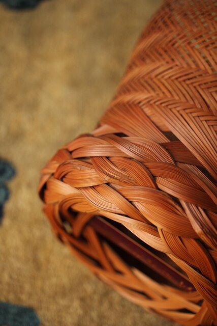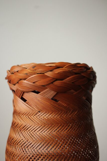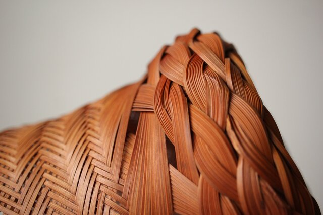 束ね編みの技法を駆使した美しい竹花籠