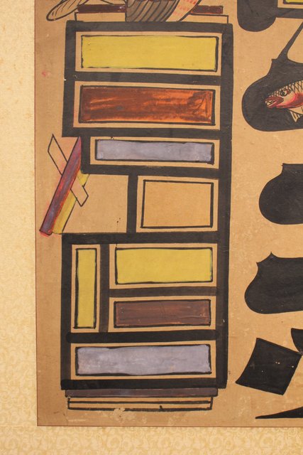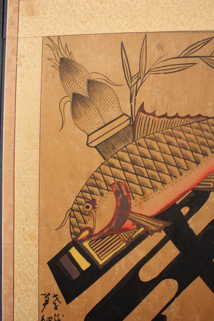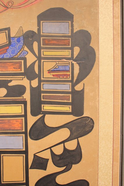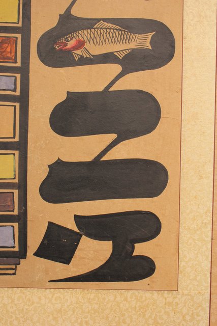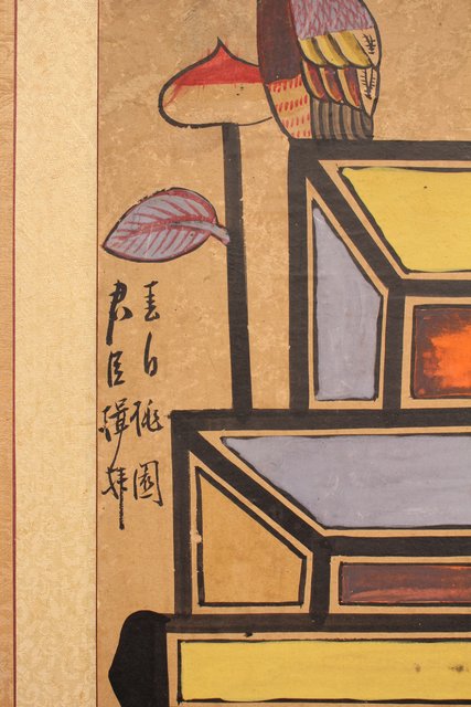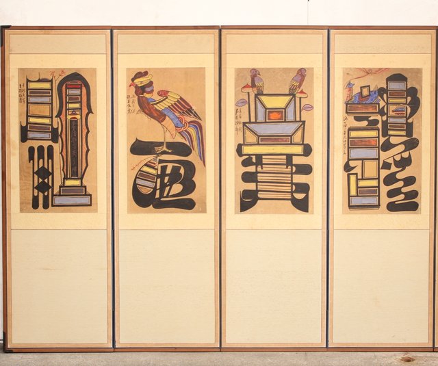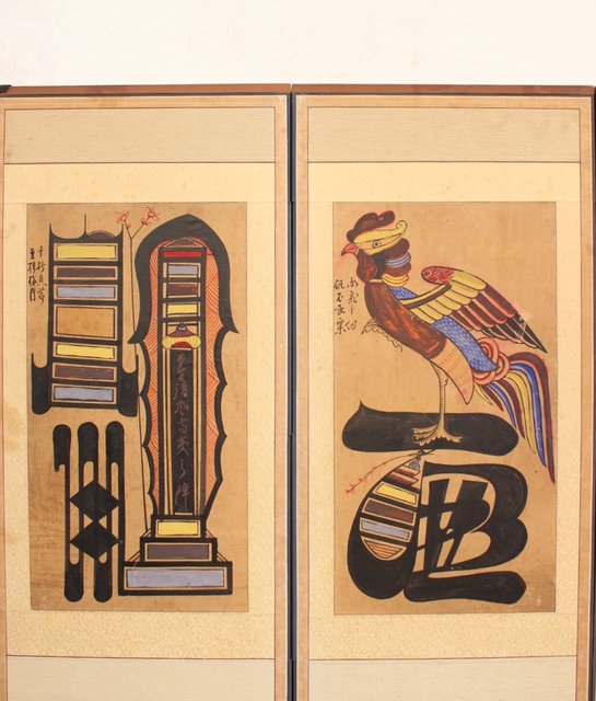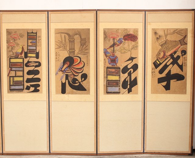 李朝朝鮮民画 文字絵 八曲半双屏風 K480