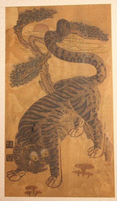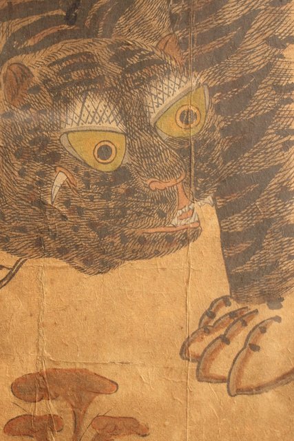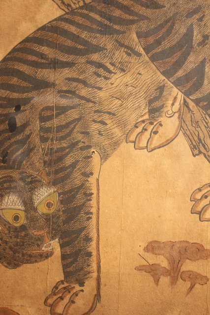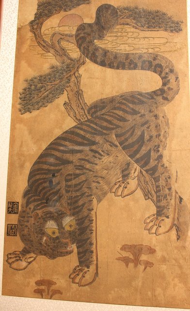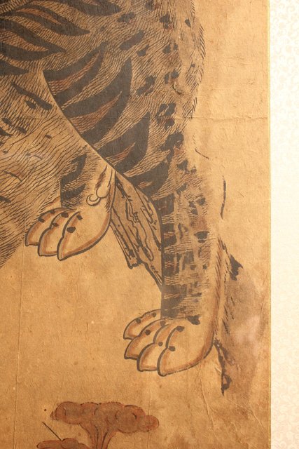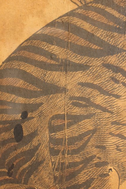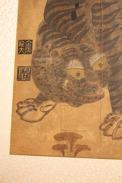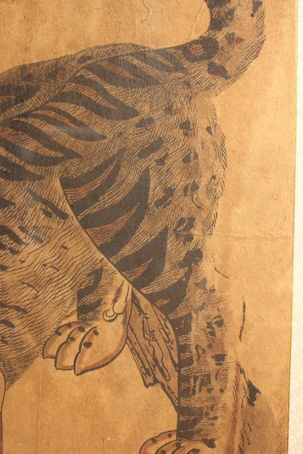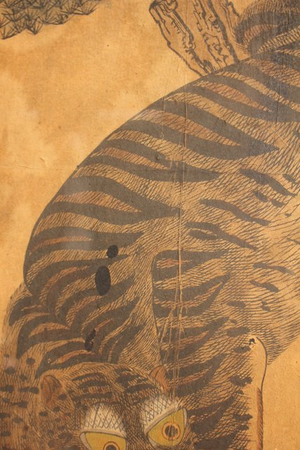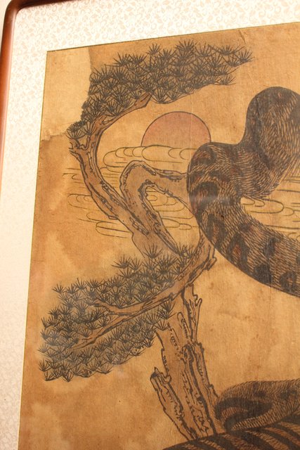 李朝朝鮮民画 在銘虎図 額装 K482