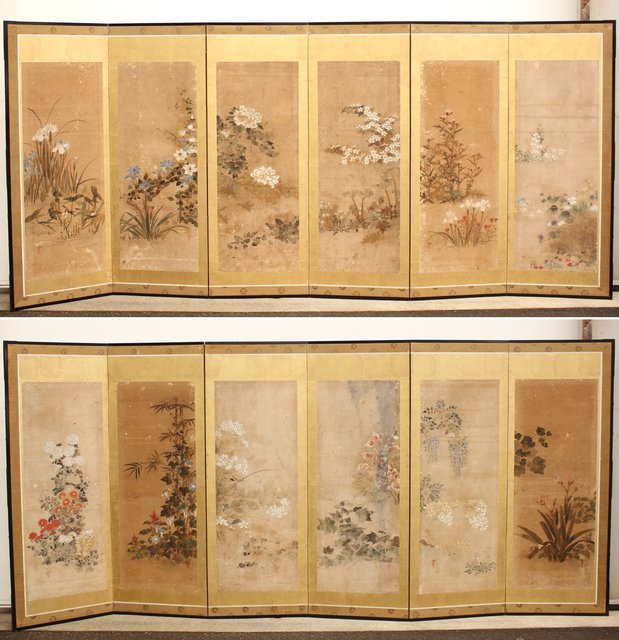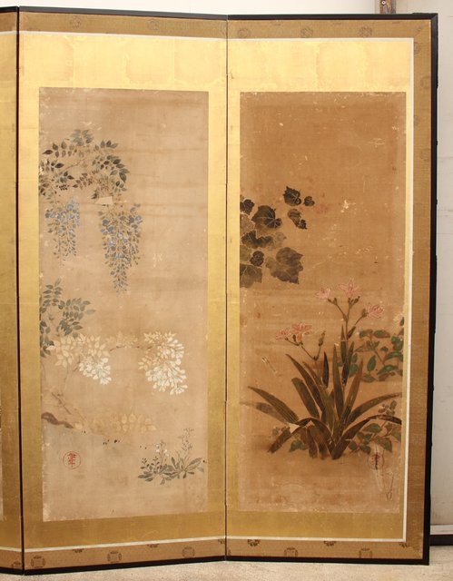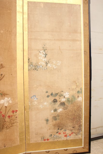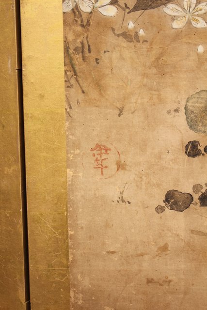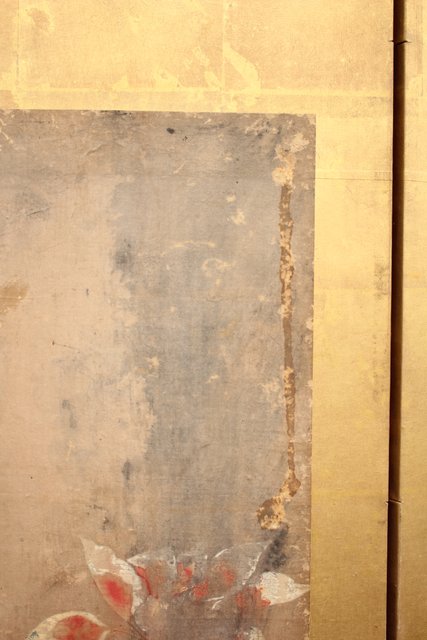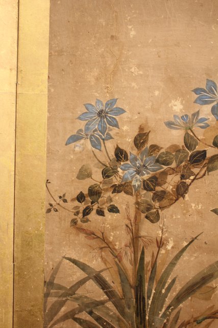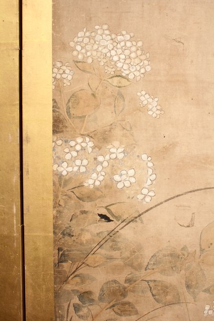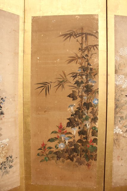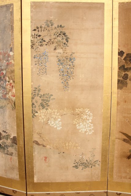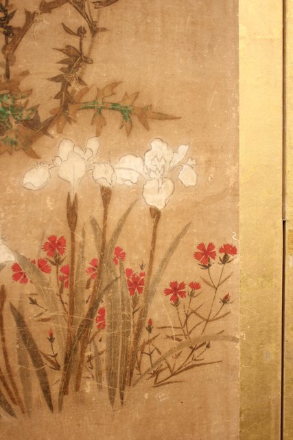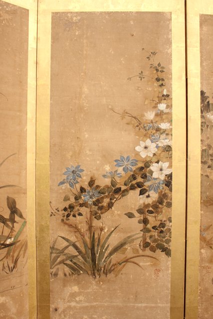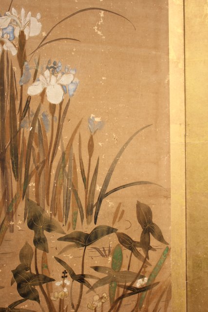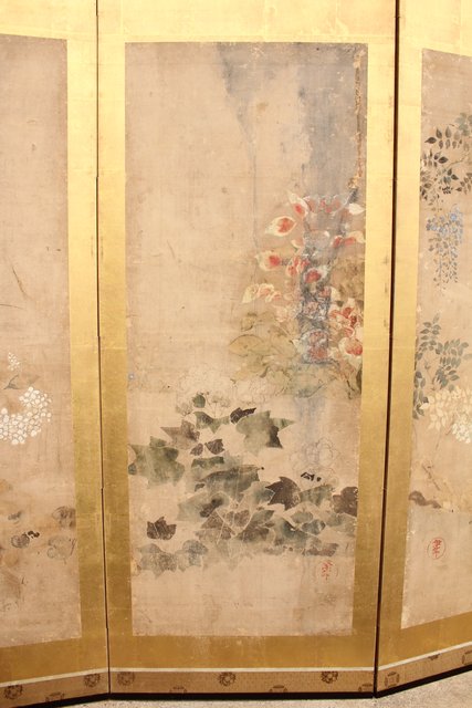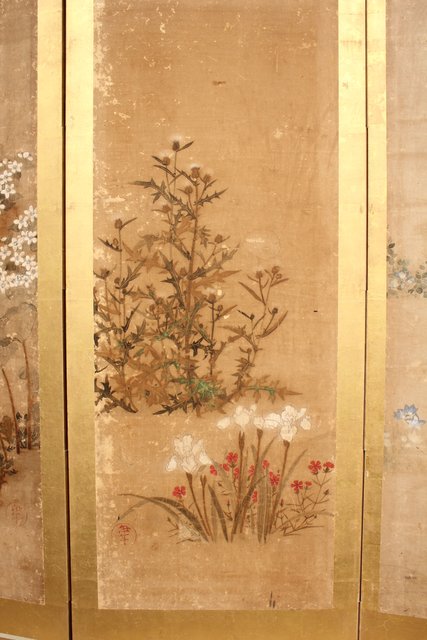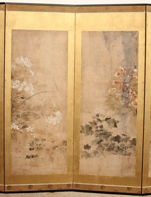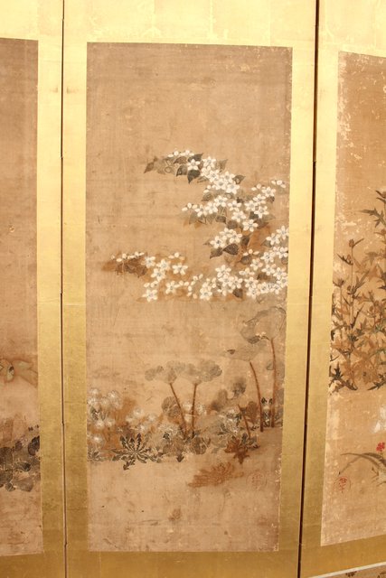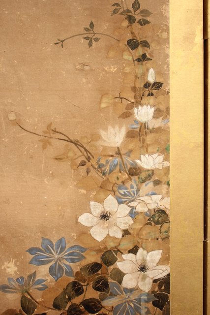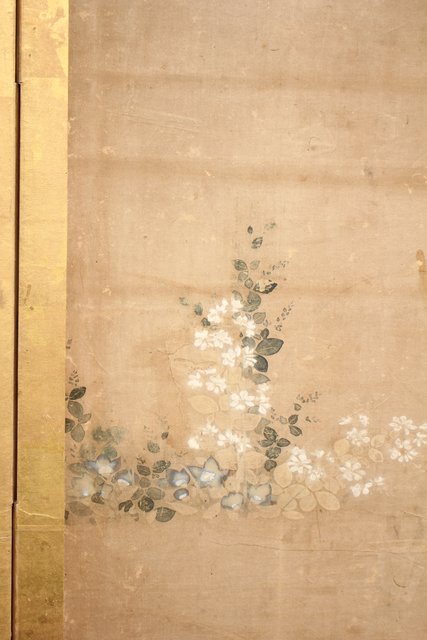 倣 俵屋宗達[伊年印] 草花図 時代屏風一双 Z010