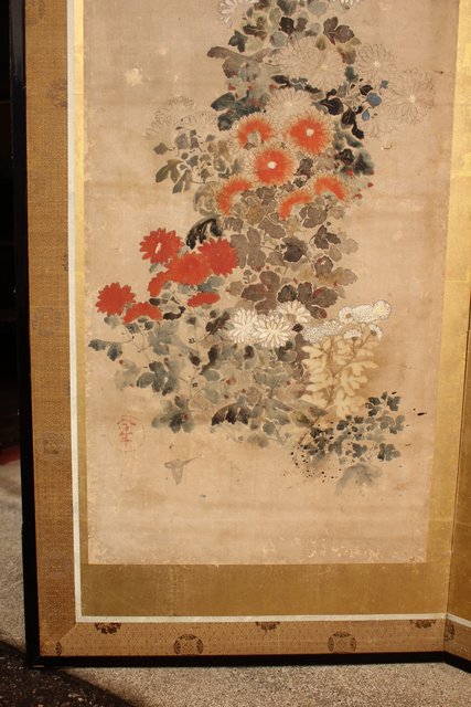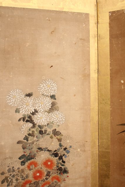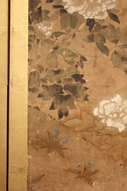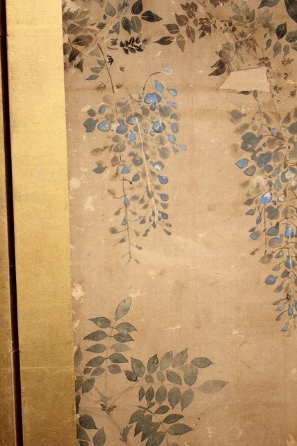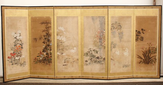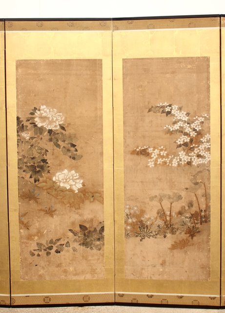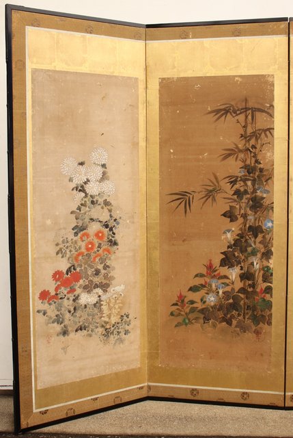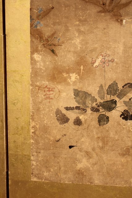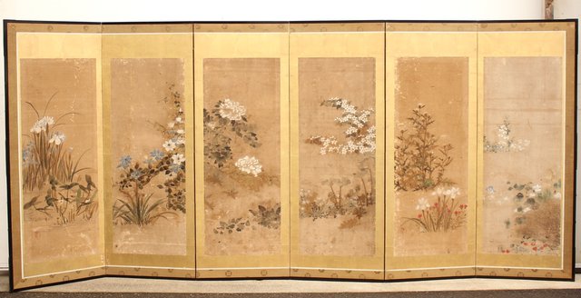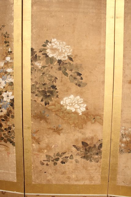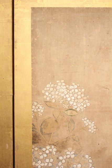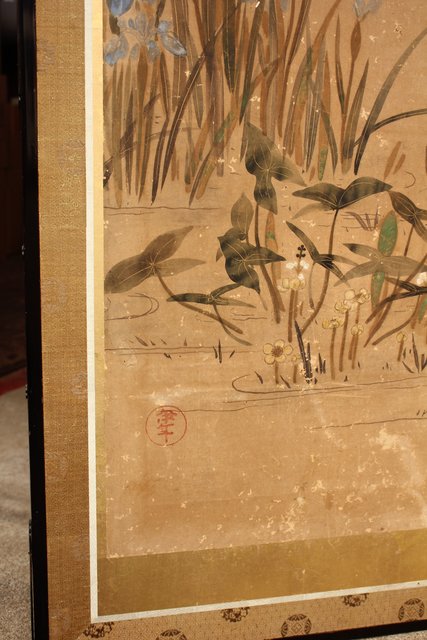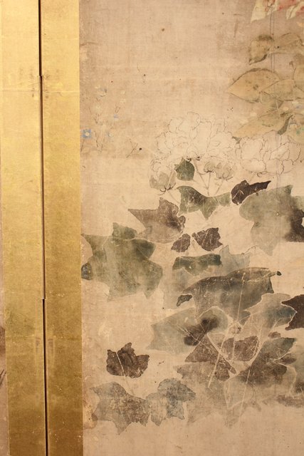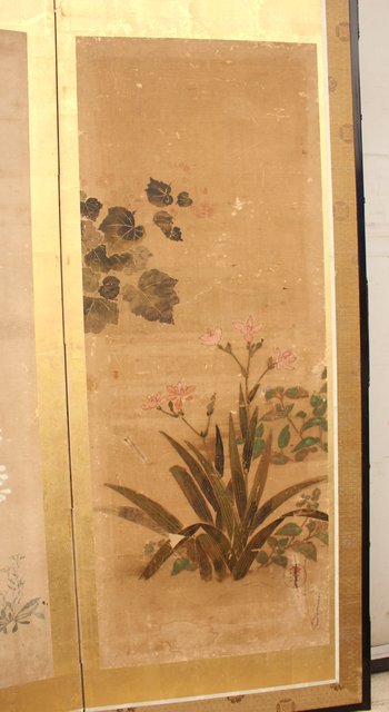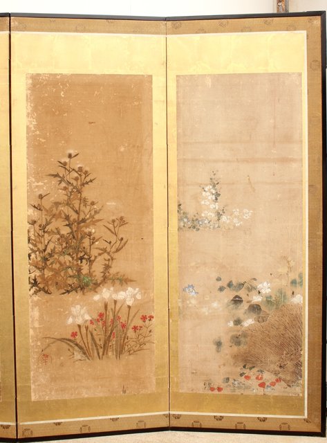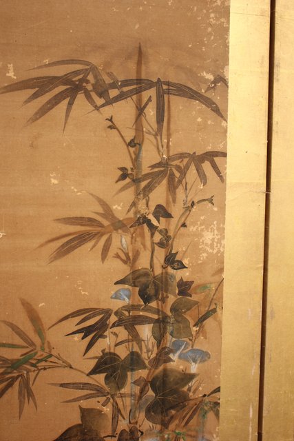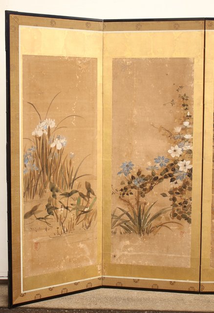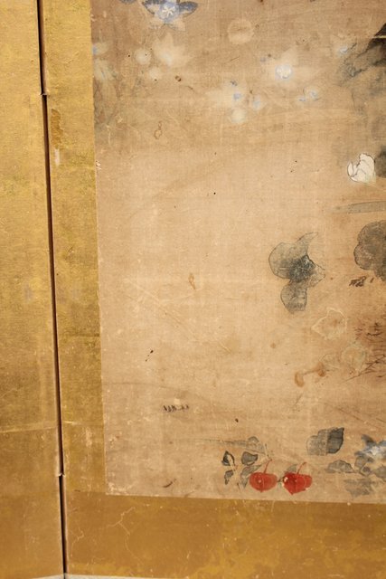 倣 俵屋宗達[伊年印] 草花図 時代屏風一双 Z010