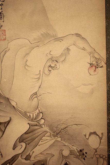 倣 曽我蕭白 がま仙人 掛軸 Z044