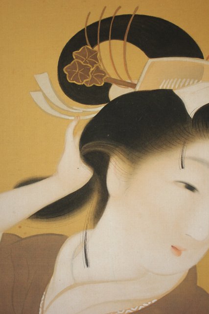 美しい女性の化粧姿の一瞬をとらえた美人画