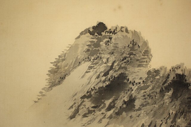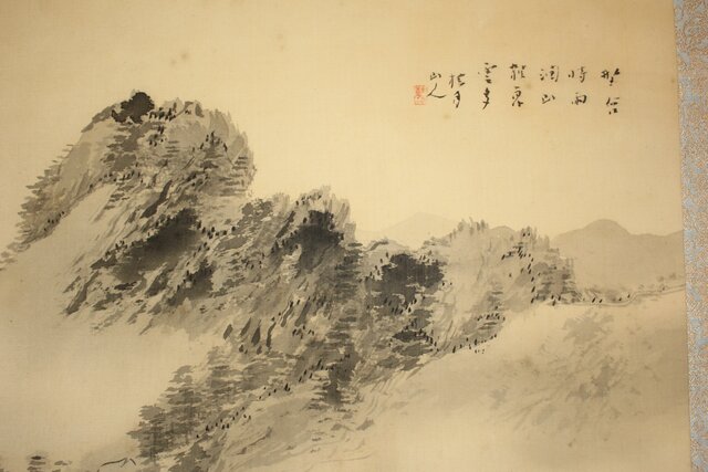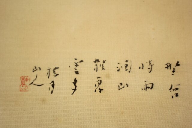 倣 松林桂月《野含時雨潤山雑夏雲多》絹本掛軸 Z184