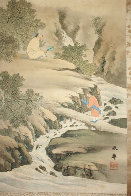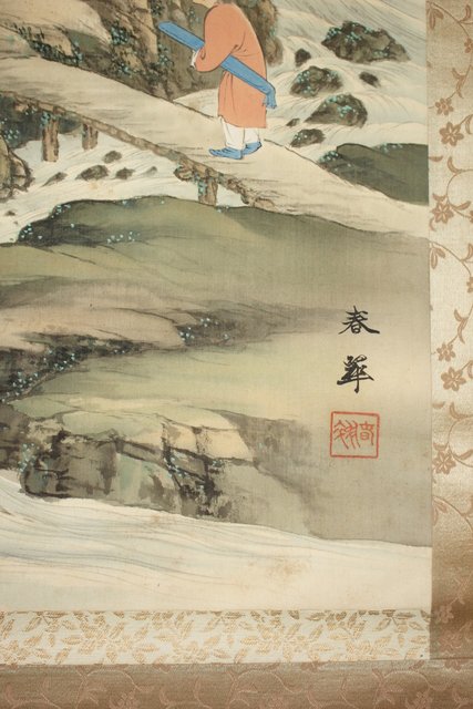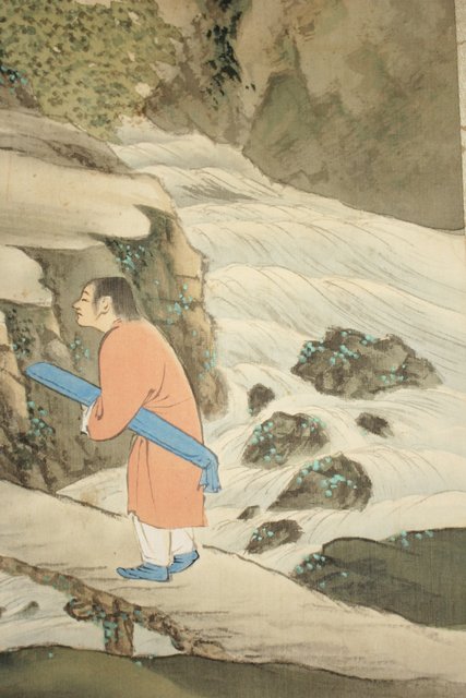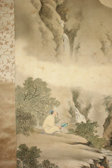 倣 山元春挙 高士観瀑図 掛軸 Z194
