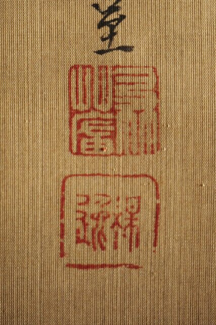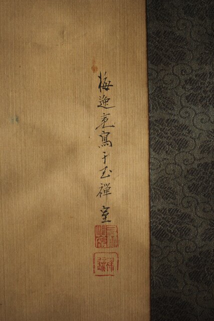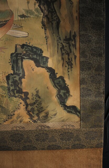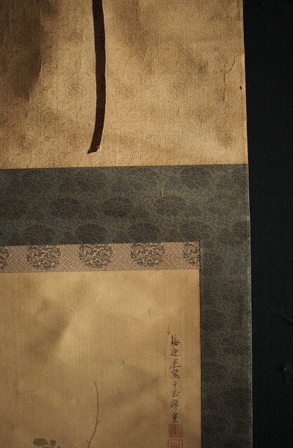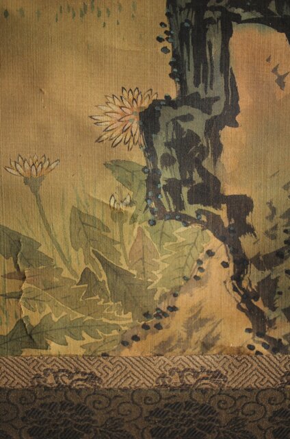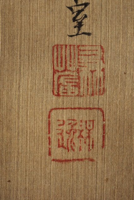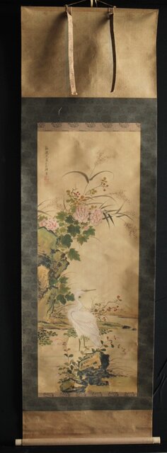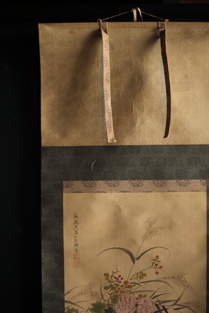 材質 絹本彩色掛軸 骨軸頭